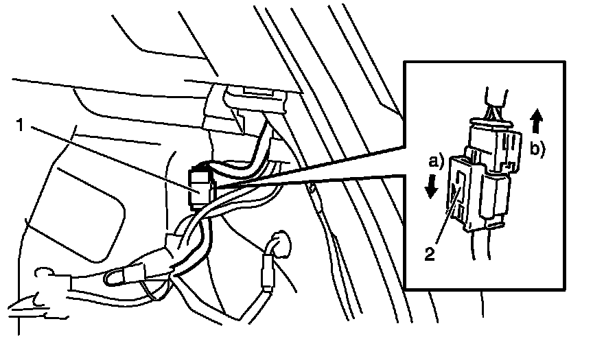 8. Disconnect connector of side curtain-air bag (inflator) module as follows.