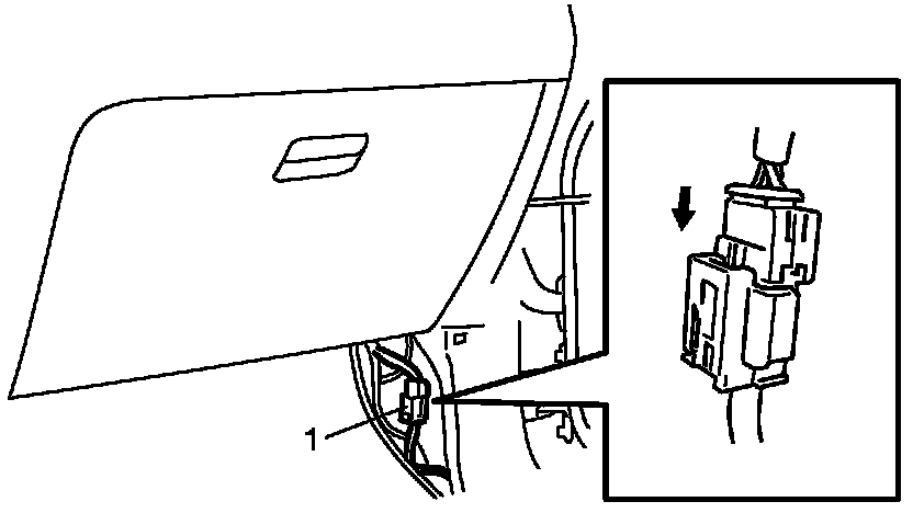 4. Connect yellow connector (1) of passenger air bag (inflator) module by pushing connector till click is heard from it.