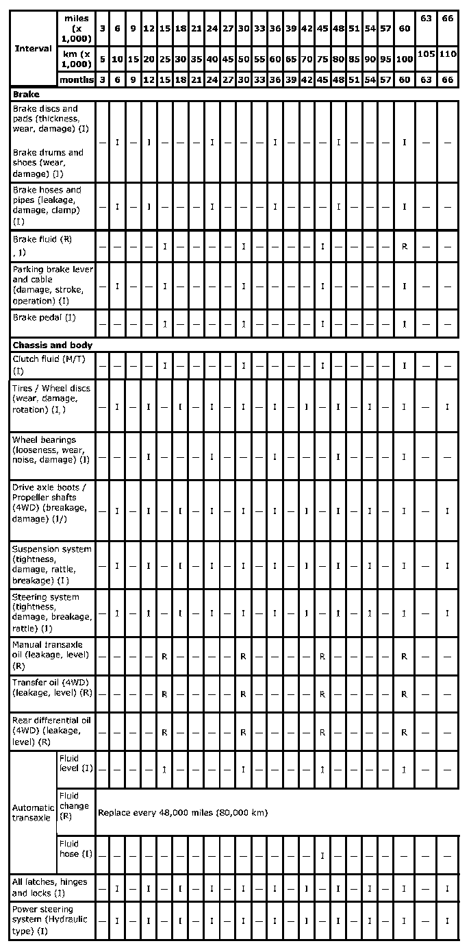 ^ This interval should be judged by odometer reading or months, whichever comes first.
