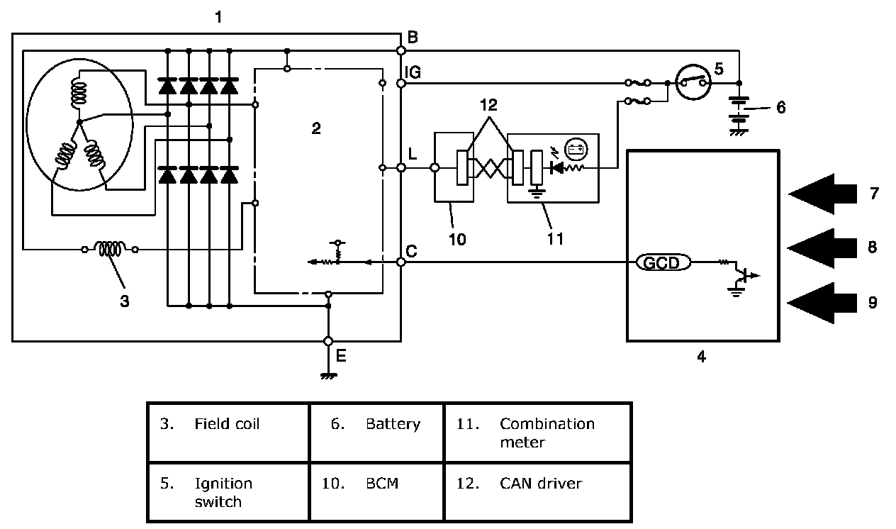 ECM controls the generated voltage of the generator using "C" terminal (generator control terminal) duty, based on the following information.