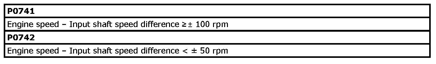 Refer to DTC P0741 / P0742: Torque Converter Clutch Circuit Performance or Stuck OFF / Stuck ON. P0742