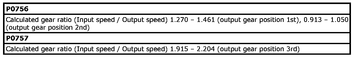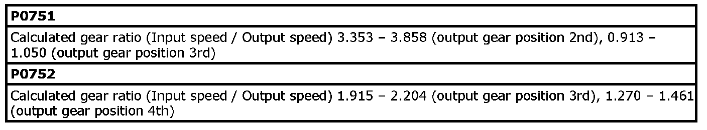 TCM detects a trouble when the actual transmission gear ratio is not equal to the ratio of each gear as commanded by TCM.
