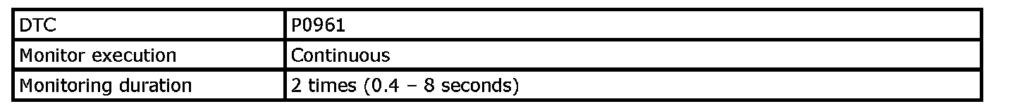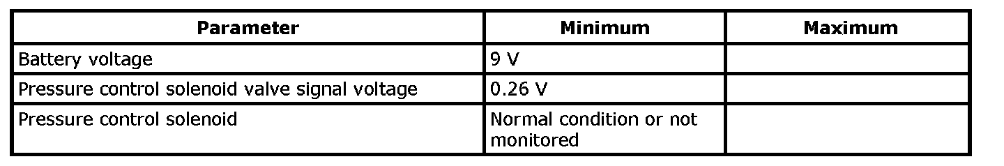 Refer to DTC P0961: Pressure Control Solenoid "A" Control Circuit Range / Performance. P0961