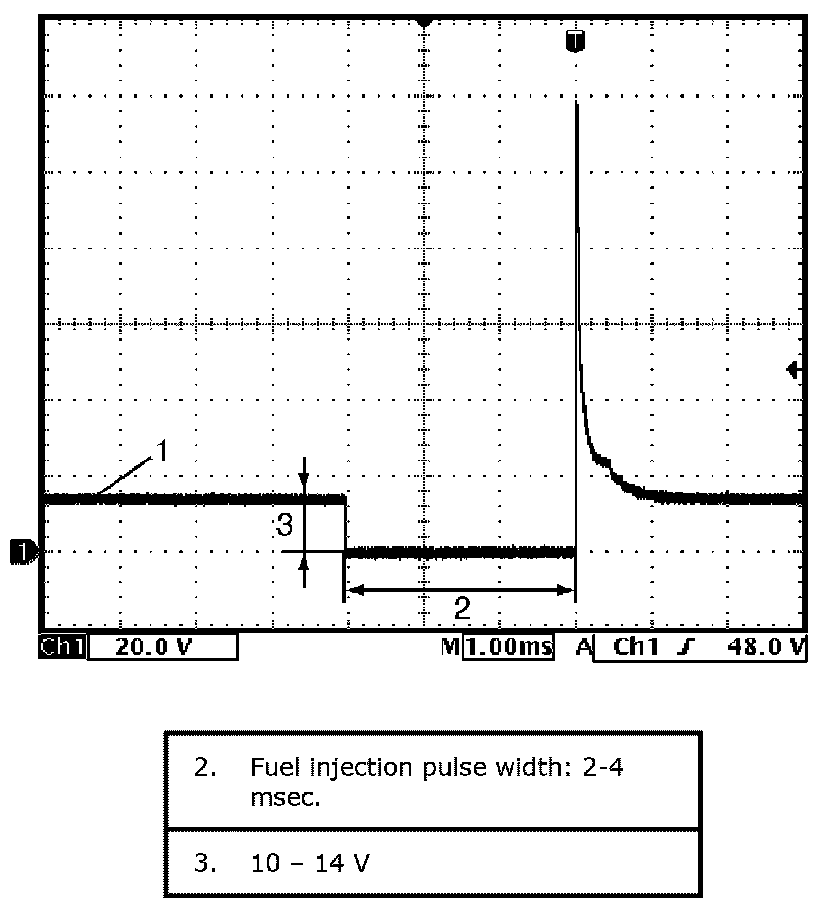 Reference waveform No.1Fuel injector signal (1) with engine idling