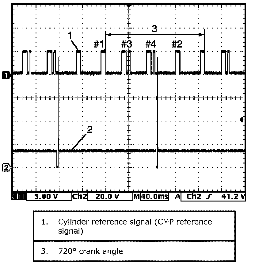 Ignition coil No.2 signal (1) with engine idling