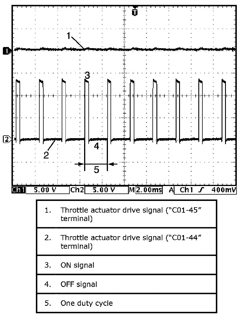 Throttle actuator output signal with ignition switch turned ON