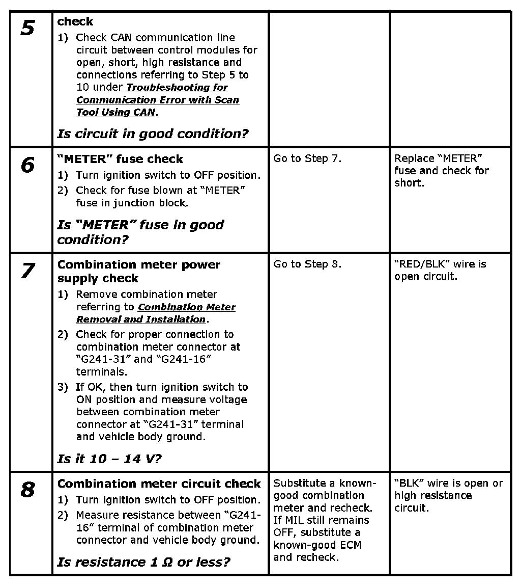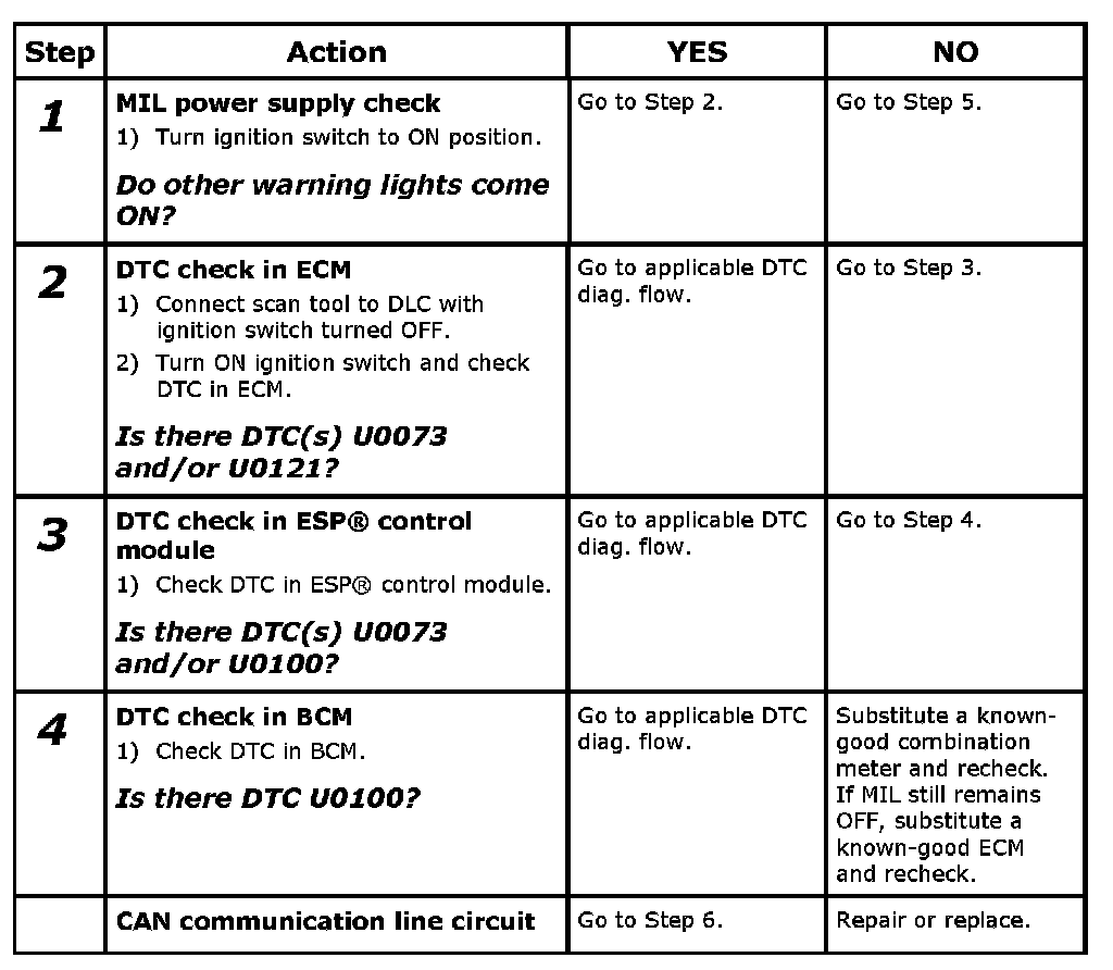 MIL Does Not Come ON with Ignition Switch ON and Engine Stop (but Engine Can Be Started)Wiring Diagram