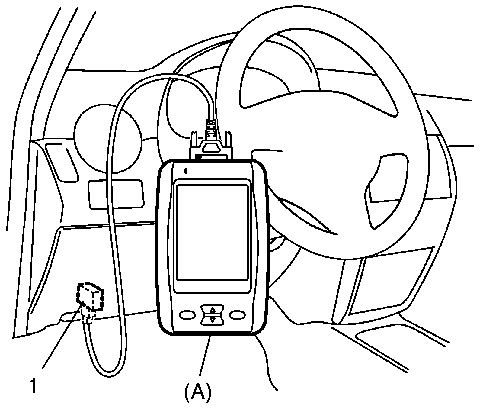 1. Connect SUZUKI scan tool to data link connector (DLC) (1) located on underside of instrument panel at driver's seat side.