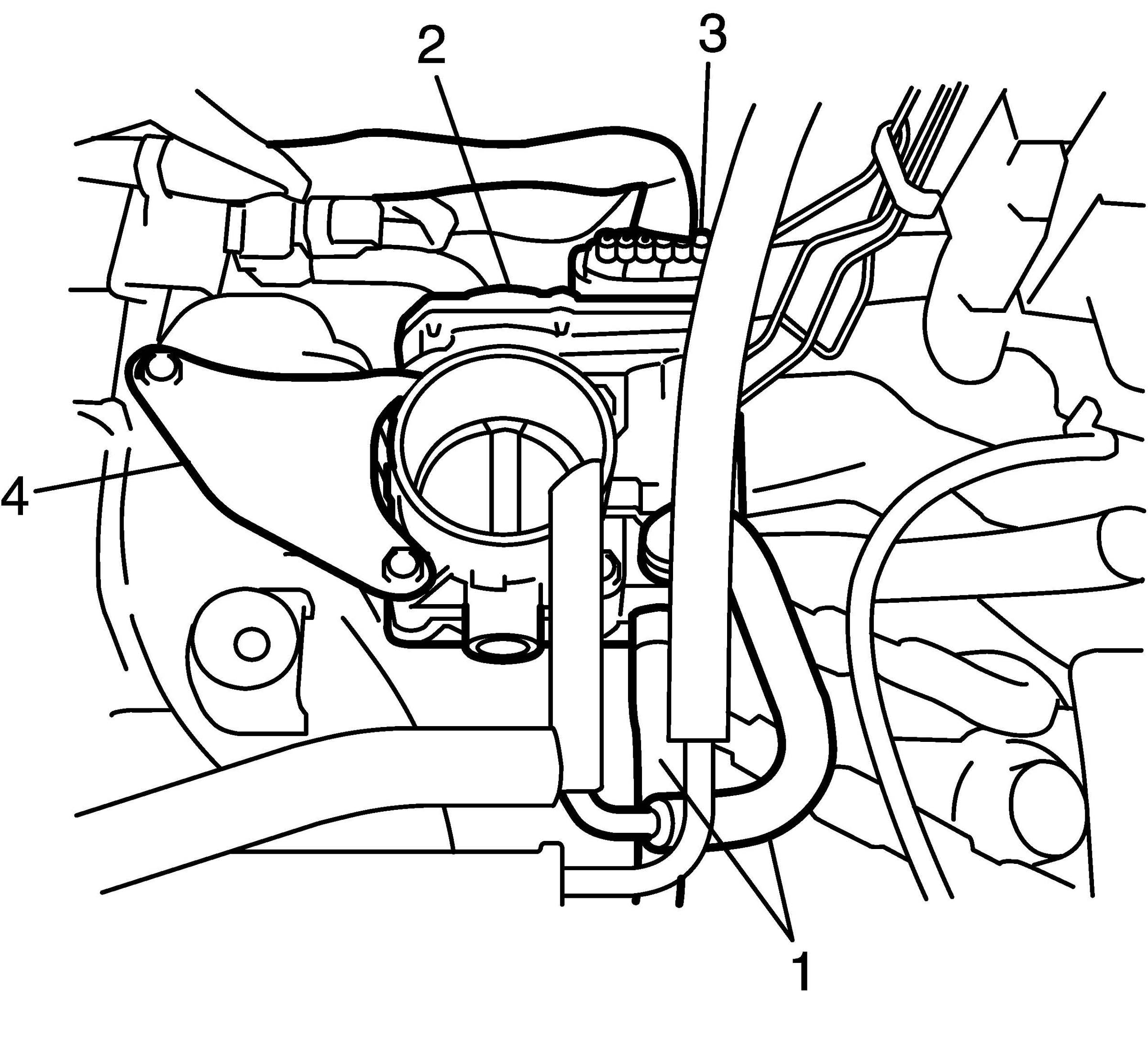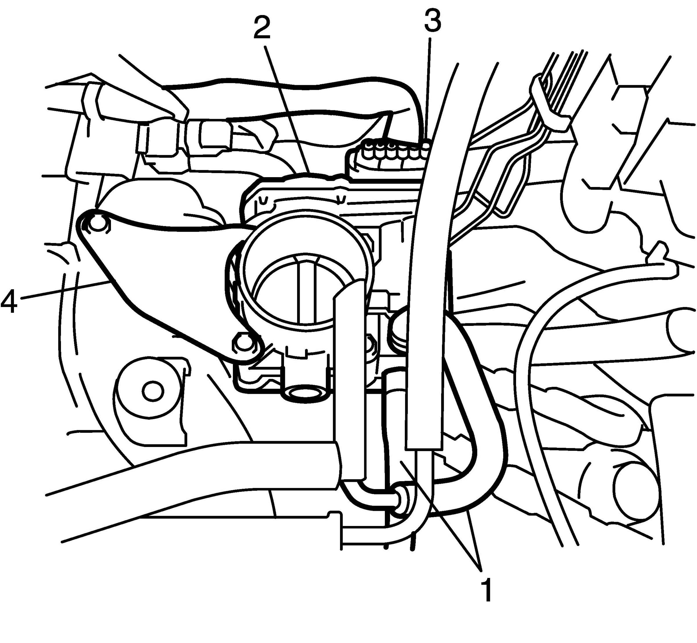 2. Install electric throttle body assembly (2) with stiffener (4) to intake manifold.
