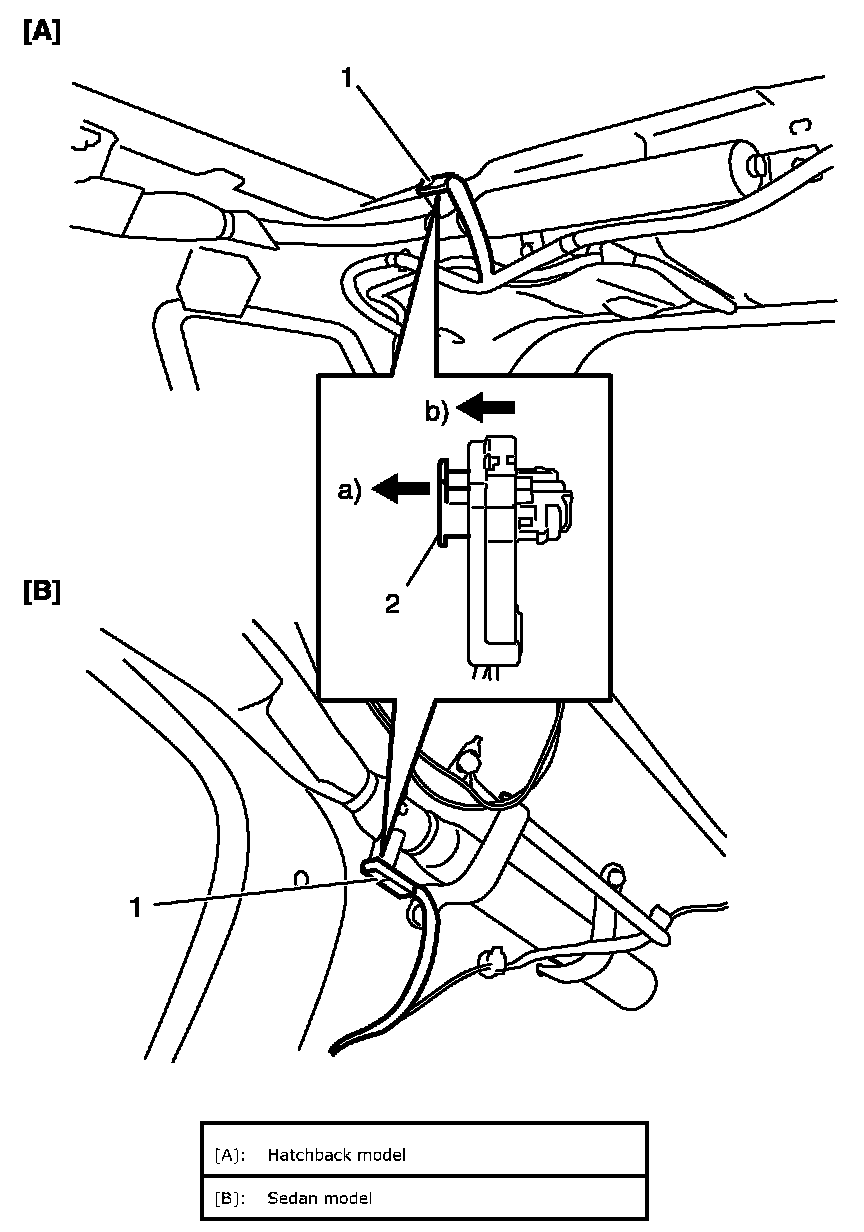^ Be sure to read Precautions on Service and Diagnosis of Air Bag System:Advanced Air Bag, Precautions on Handling and Storage of Air Bag System Components:Advanced Air Bag and Precautions on Disposal of Air Bag and Seat Belt Pretensioner:Advanced Air Bag before starting to work and observe every precaution during work. Neglecting them may result in personal injury or undeployment of the air bag when necessary.