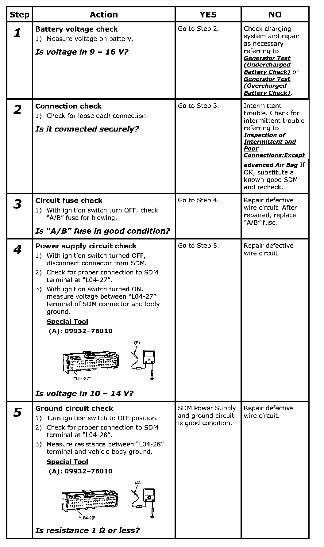 SDM Power Supply and Ground Circuit Check