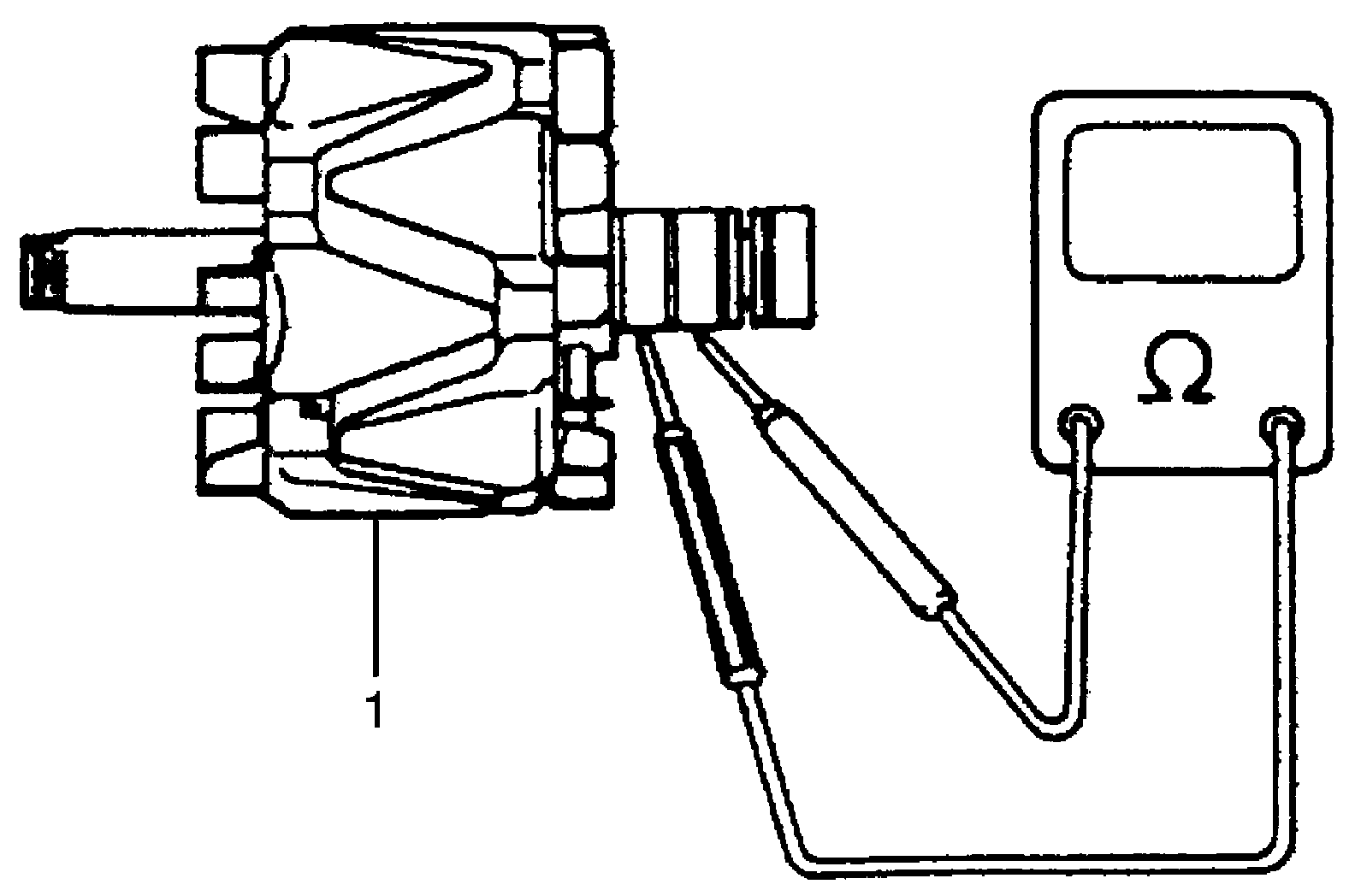 ^ Using ohmmeter, check for continuity between slip rings of rotor. If there is no continuity, replace rotor (1).