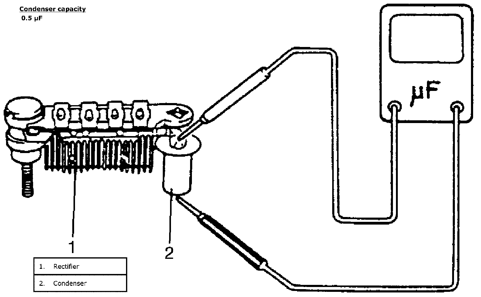 ^ Using ohmmeter, check that there is no continuity between slip ring and rotor core. If there is continuity. replace rotor (1).