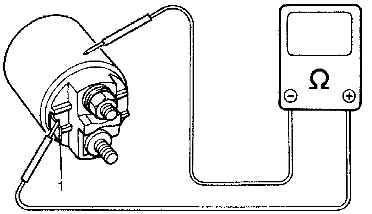 Check for continuity across magnetic switch "S" terminal (1) and "M" terminal (2). If no continuity, coil is open and should be replaced.