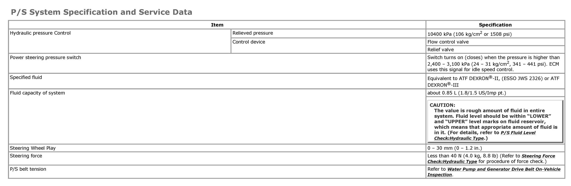 P/S System Specification and Service Data