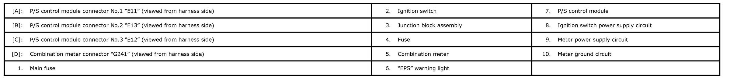 "EPS" Warning Light Does Not Come ON with Ignition Switch Turned ON before Engine StartsWiring Diagram
