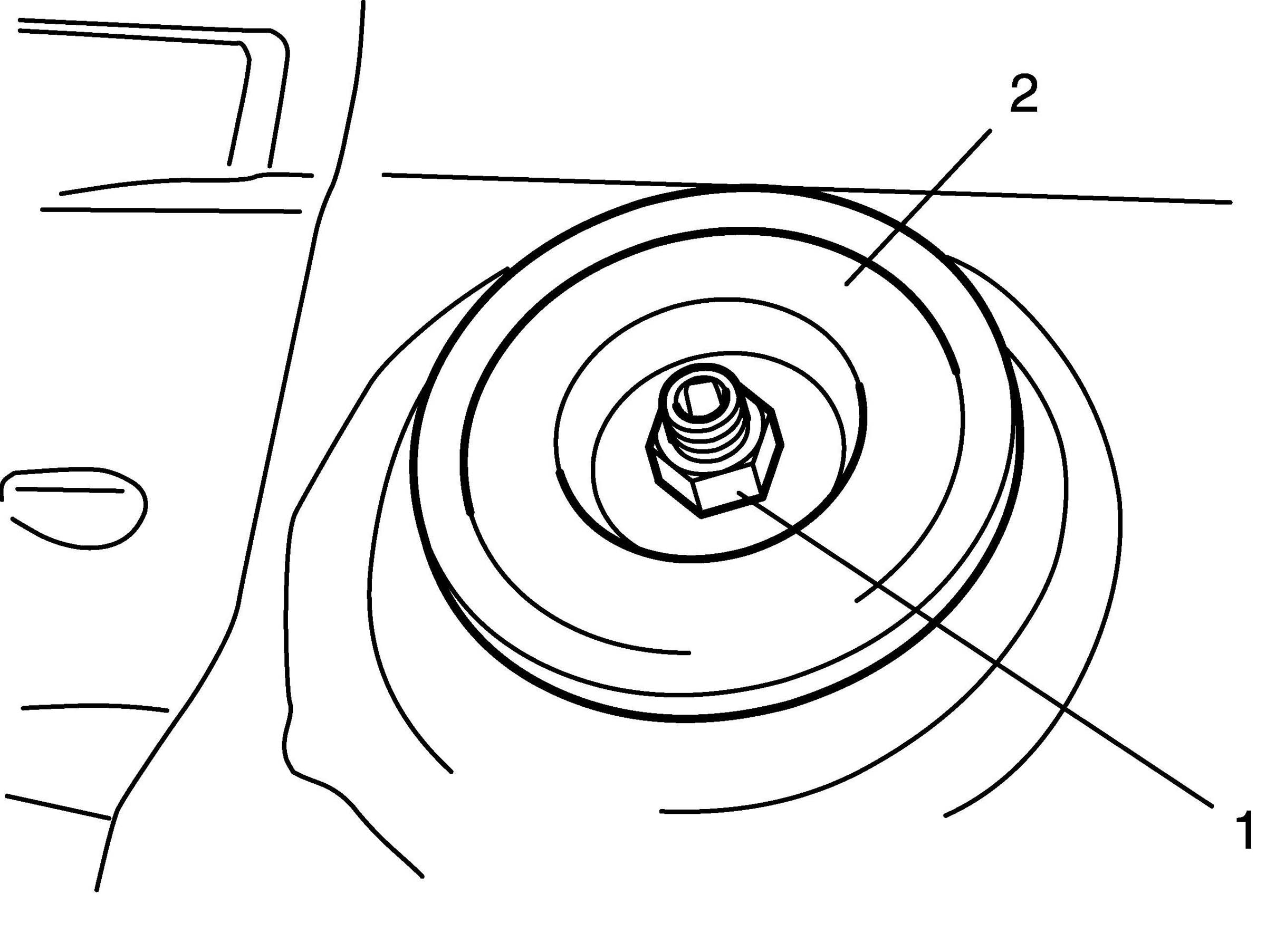 6. Remove strut nut (1), and remove rebound stopper (2).