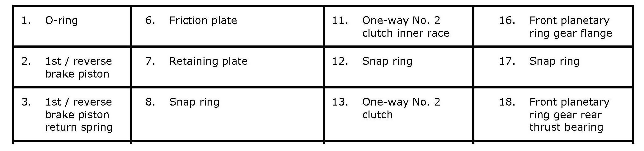 1st / Reverse Brake and One-Way No. 2 Clutch Components