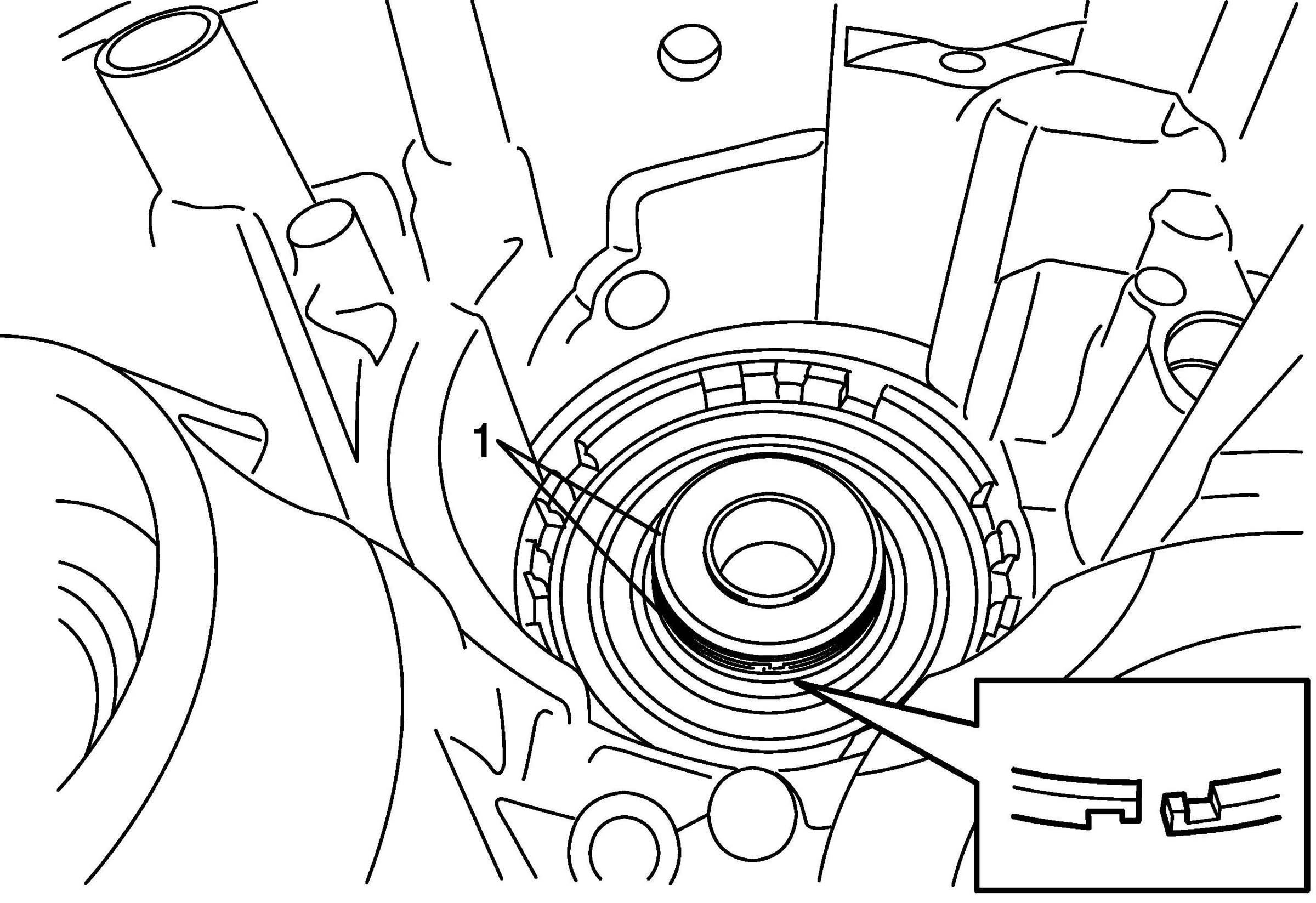74. Install one-way No. 1 clutch assembly (1) into oil pump assembly (2).