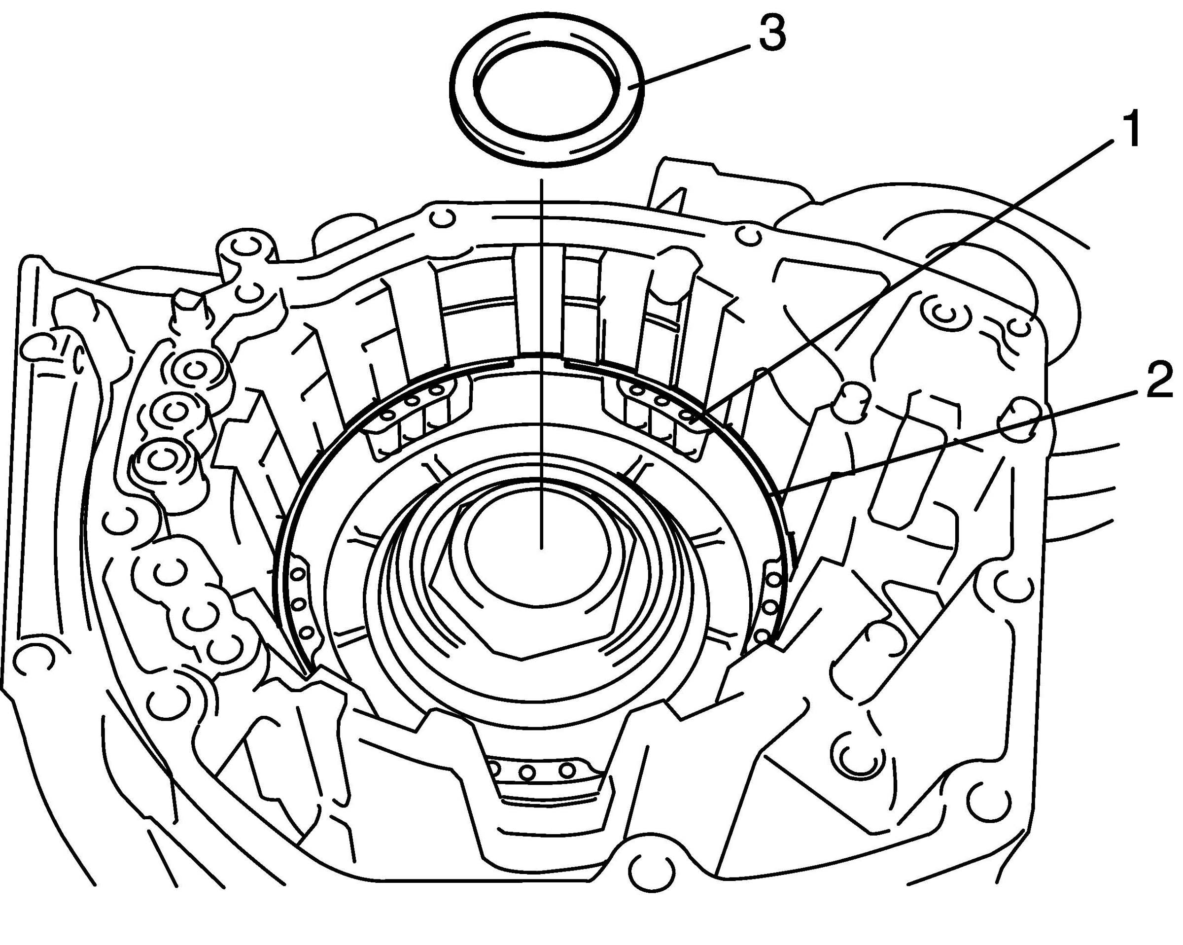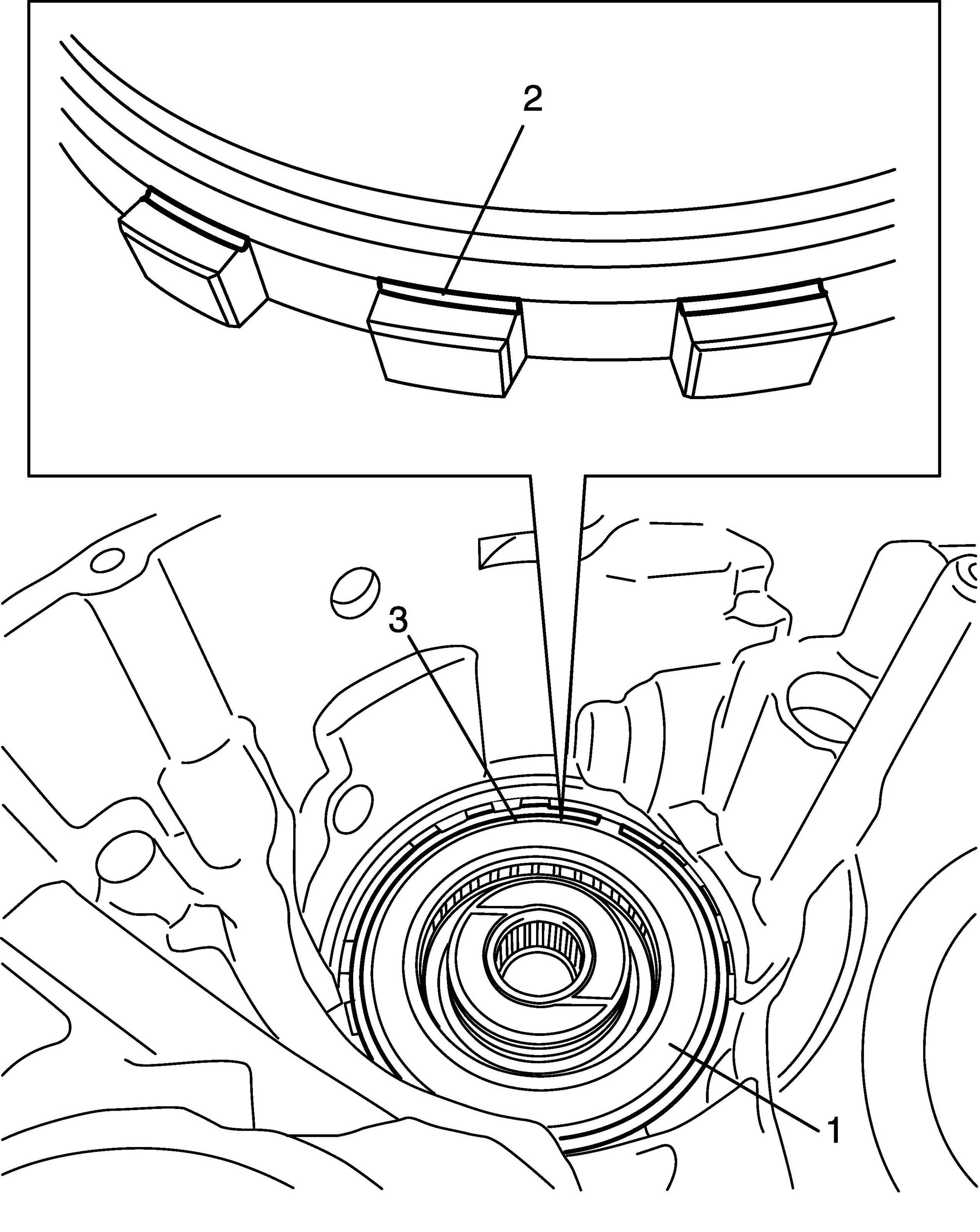 39. Install front planetary ring gear front thrust bearing (1) and front planetary ring gear rear thrust bearing (2) to front planetary ring gear (3).