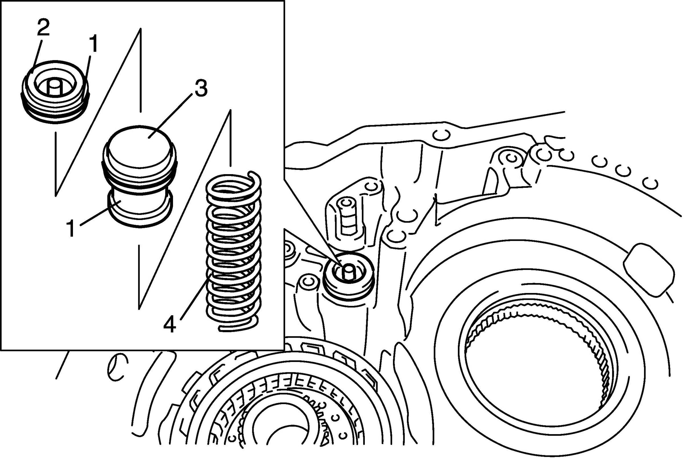 34. Mount 1st / reverse brake piston return spring (1).