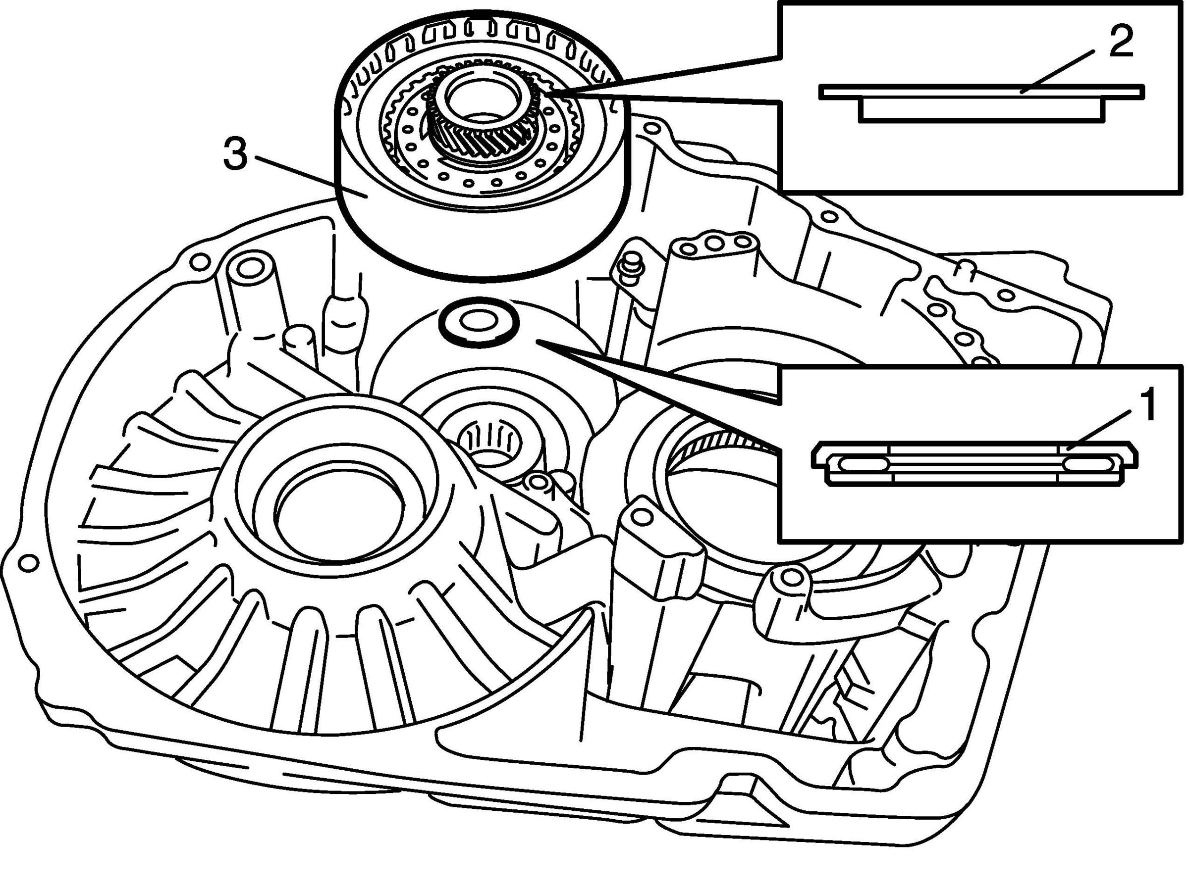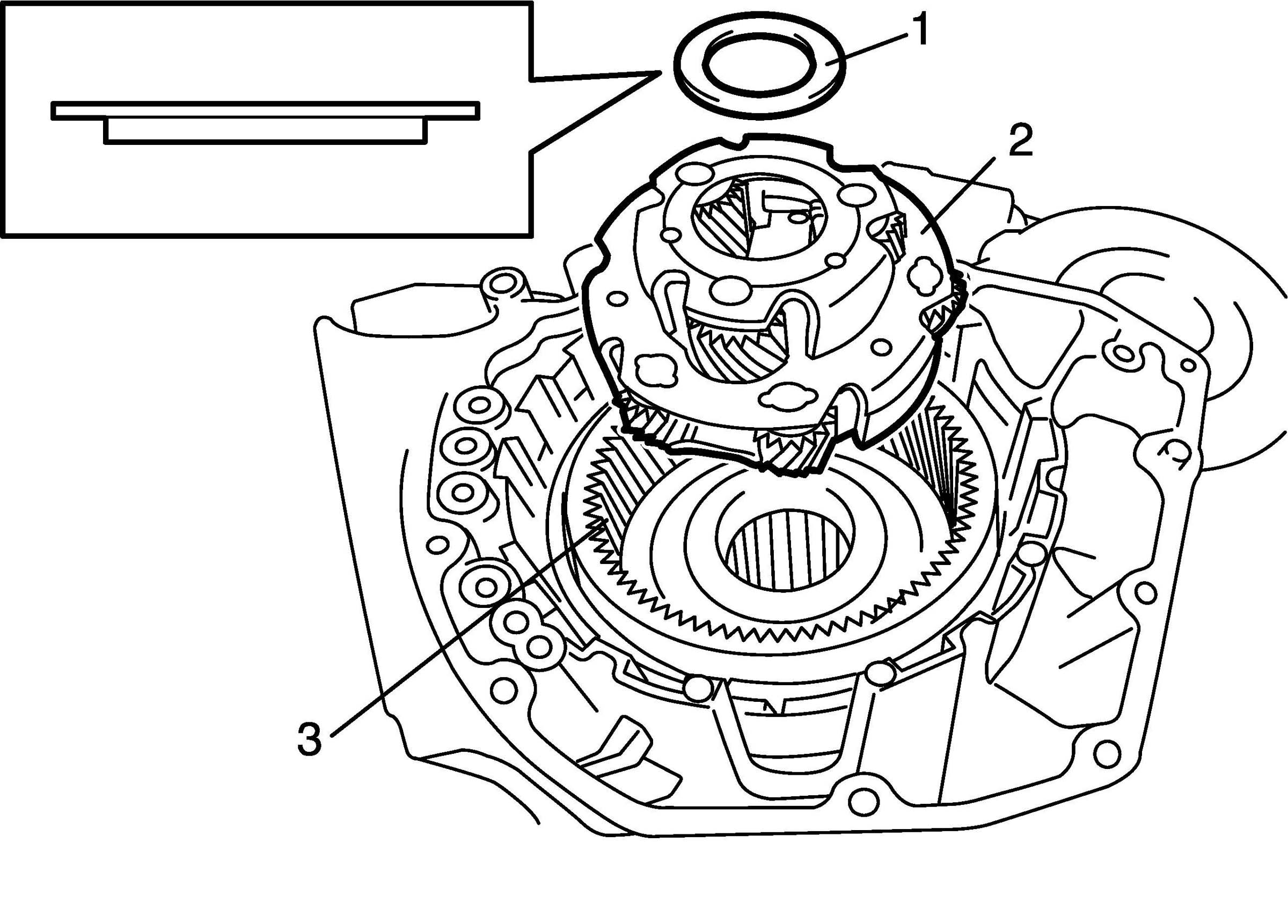 47. Install planetary front gear (2) to front planetary ring gear (3).