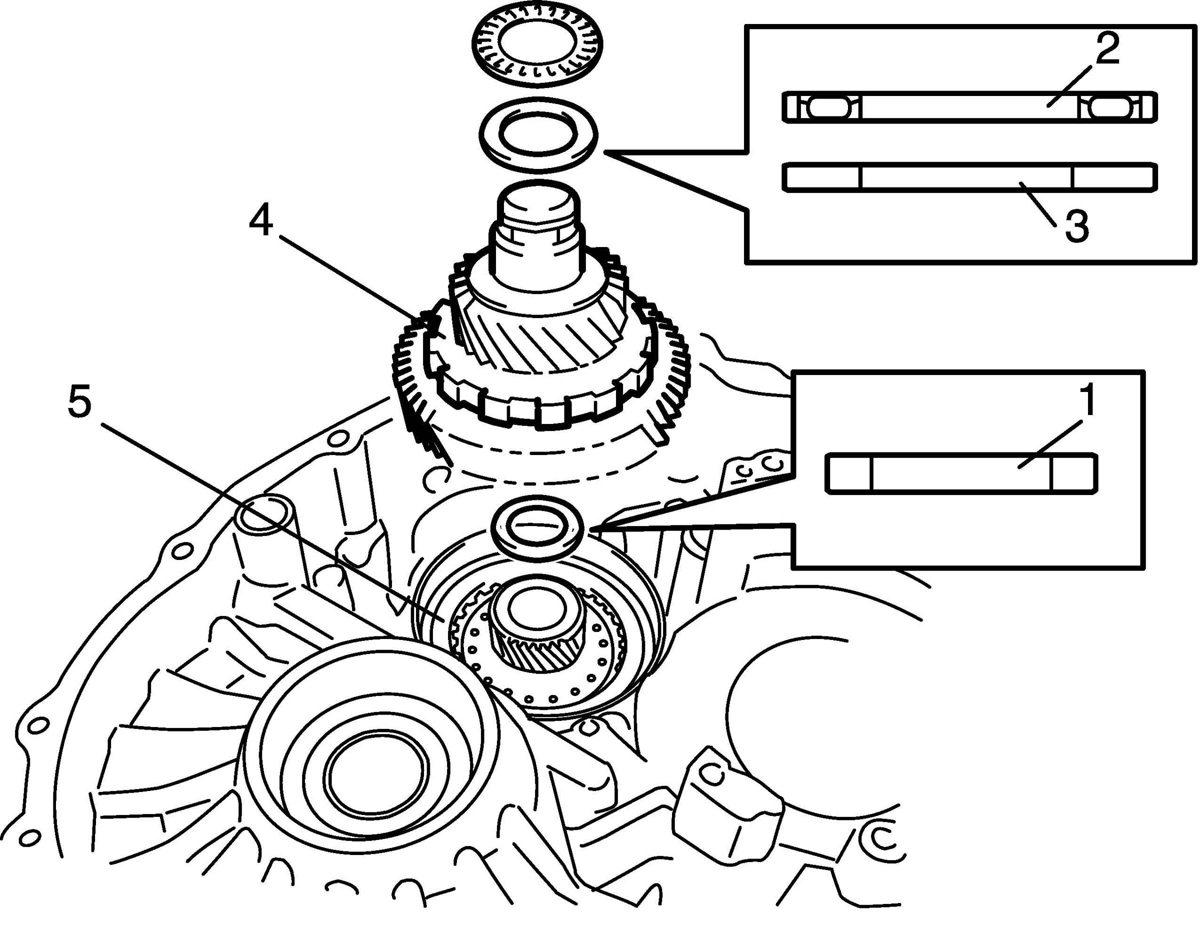 45. Apply petroleum jelly to front planetary carrier rear thrust bearing race (1).