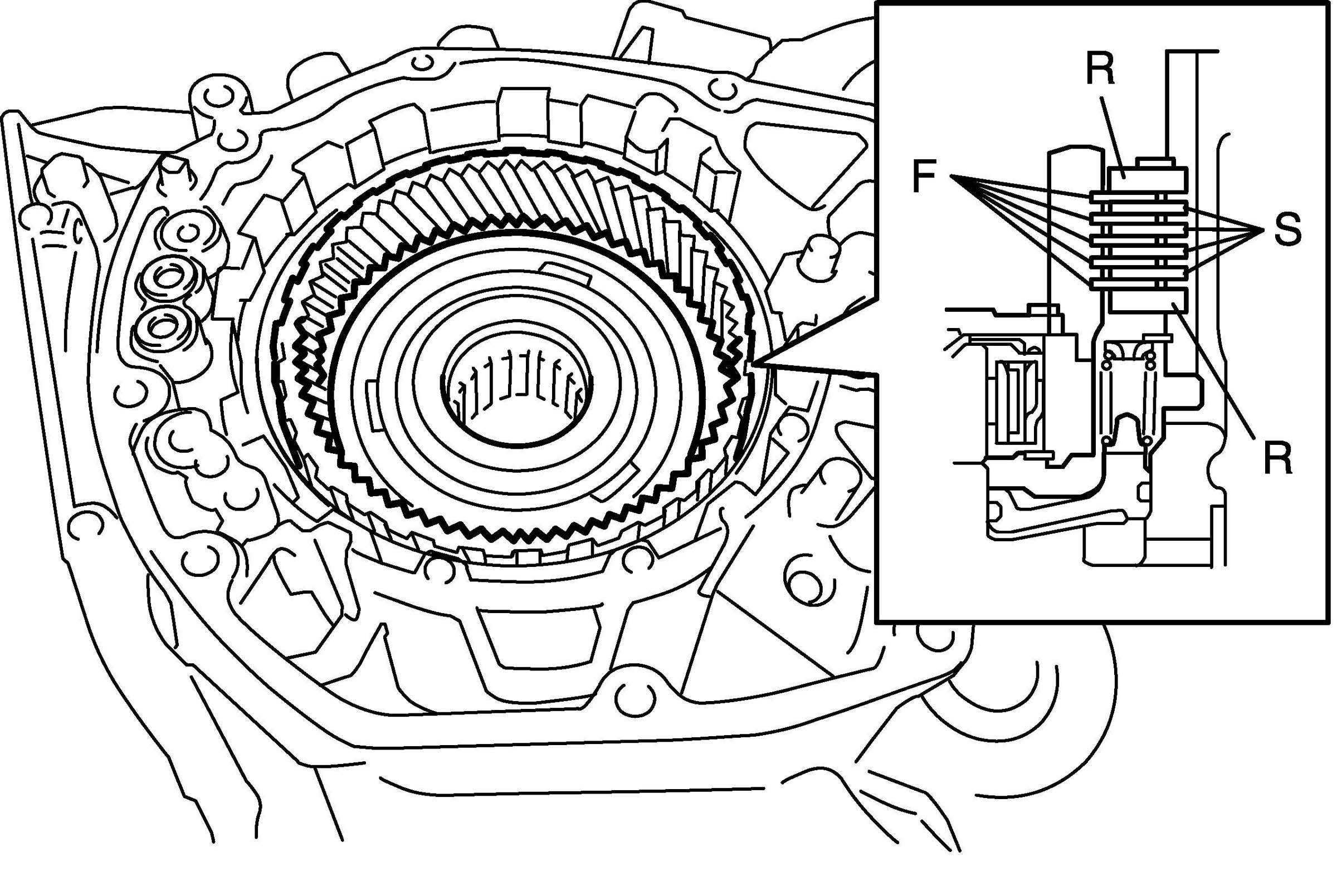 42. Install separator plates "S", friction plates "F" and retaining plates "R" in the following order.