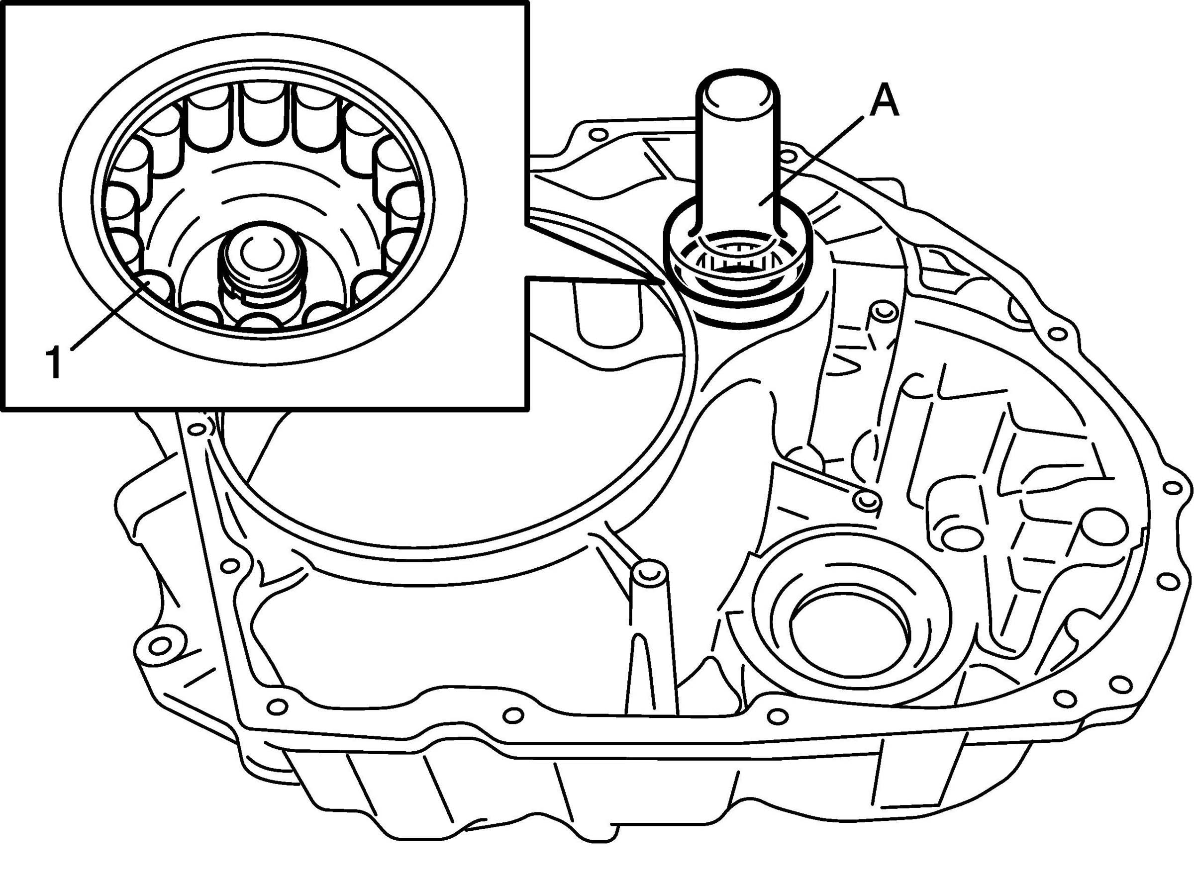 59. Apply petroleum jelly to input shaft rear thrust bearing rear race (1).
