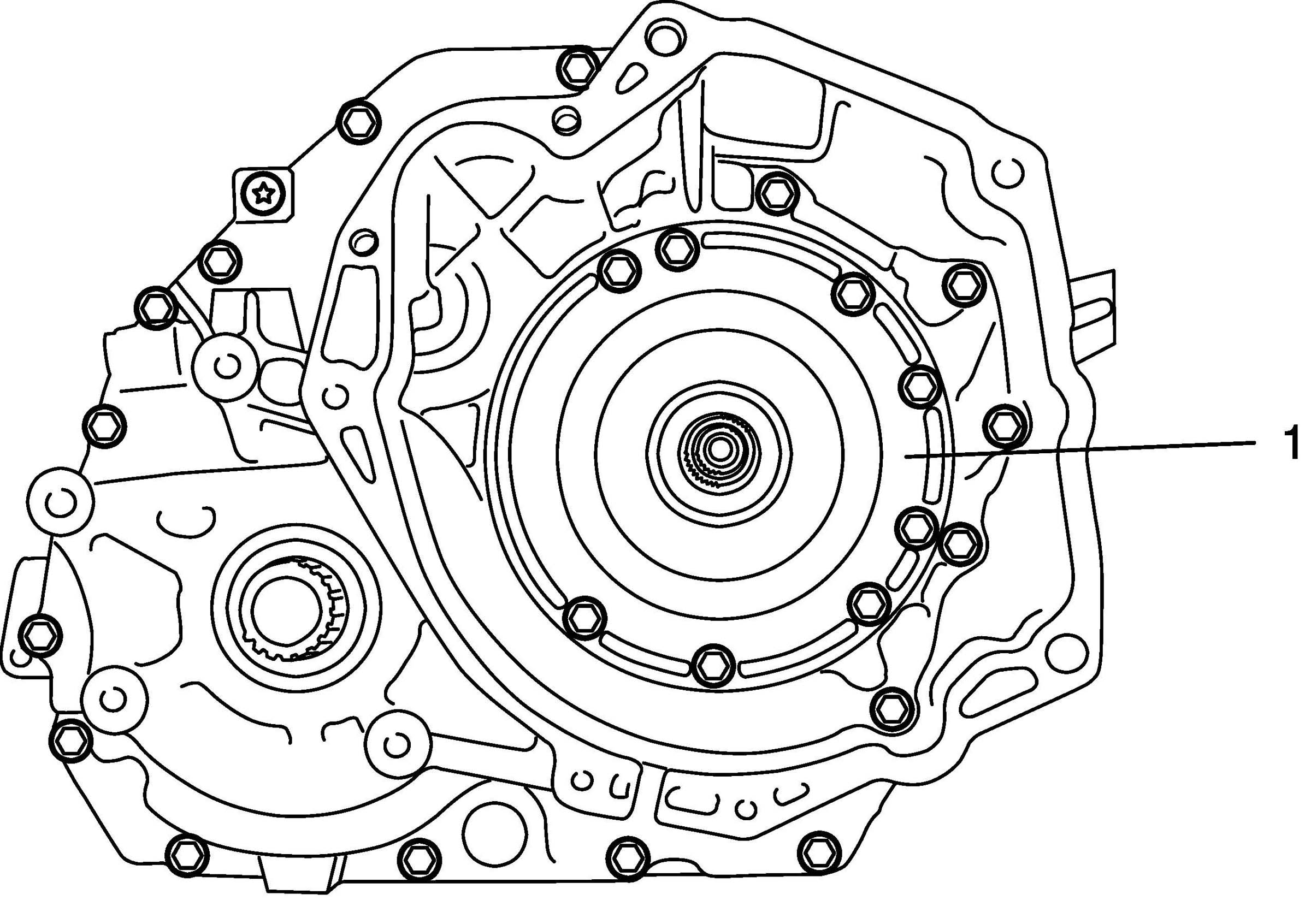 86. Install transaxle side cover (1) by tightening new torx(R) bolts to specified torque.