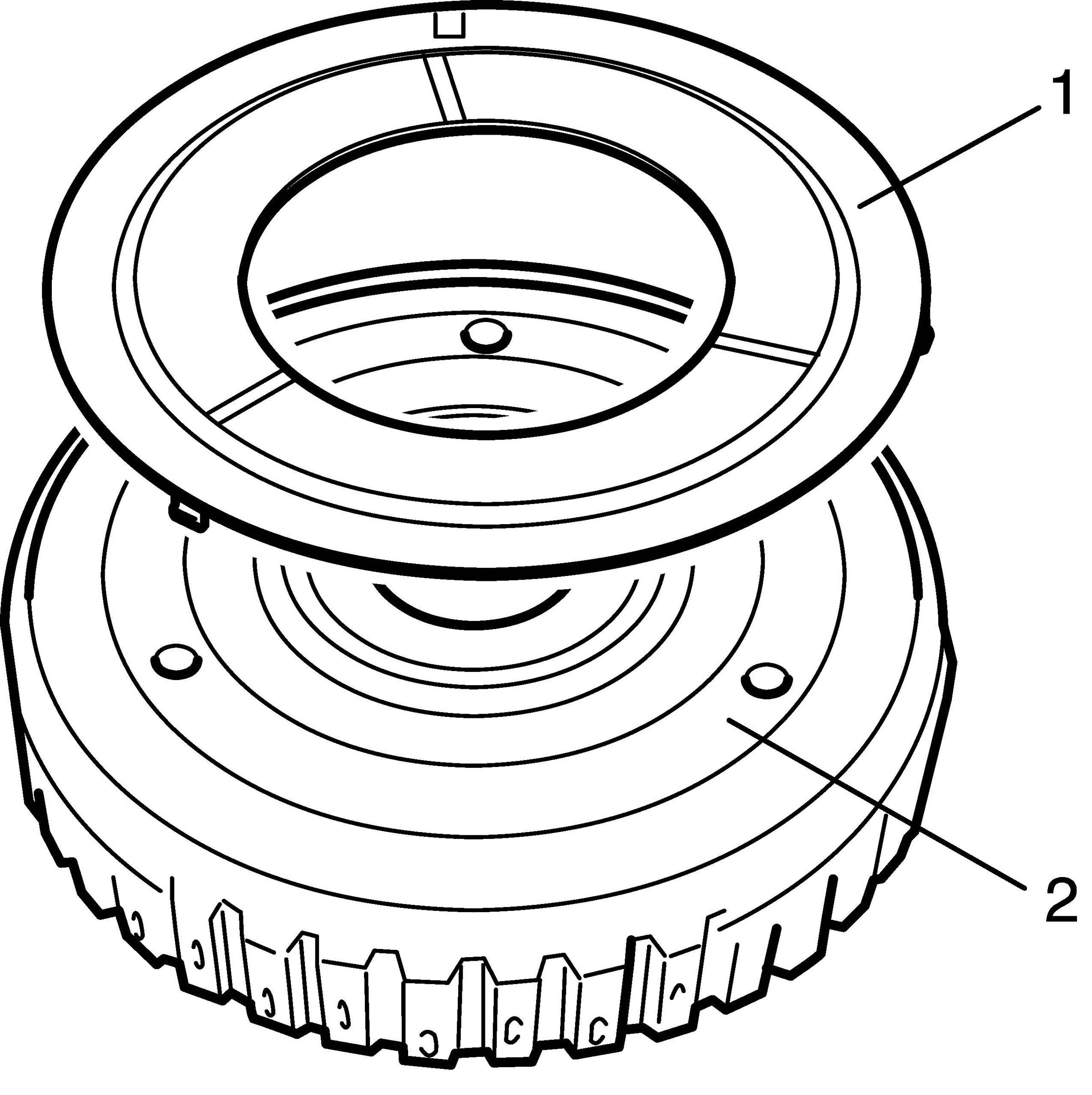 2. Remove one-way No. 1 clutch inner race (1) and one-way No. 1 clutch front thrust washer (2).