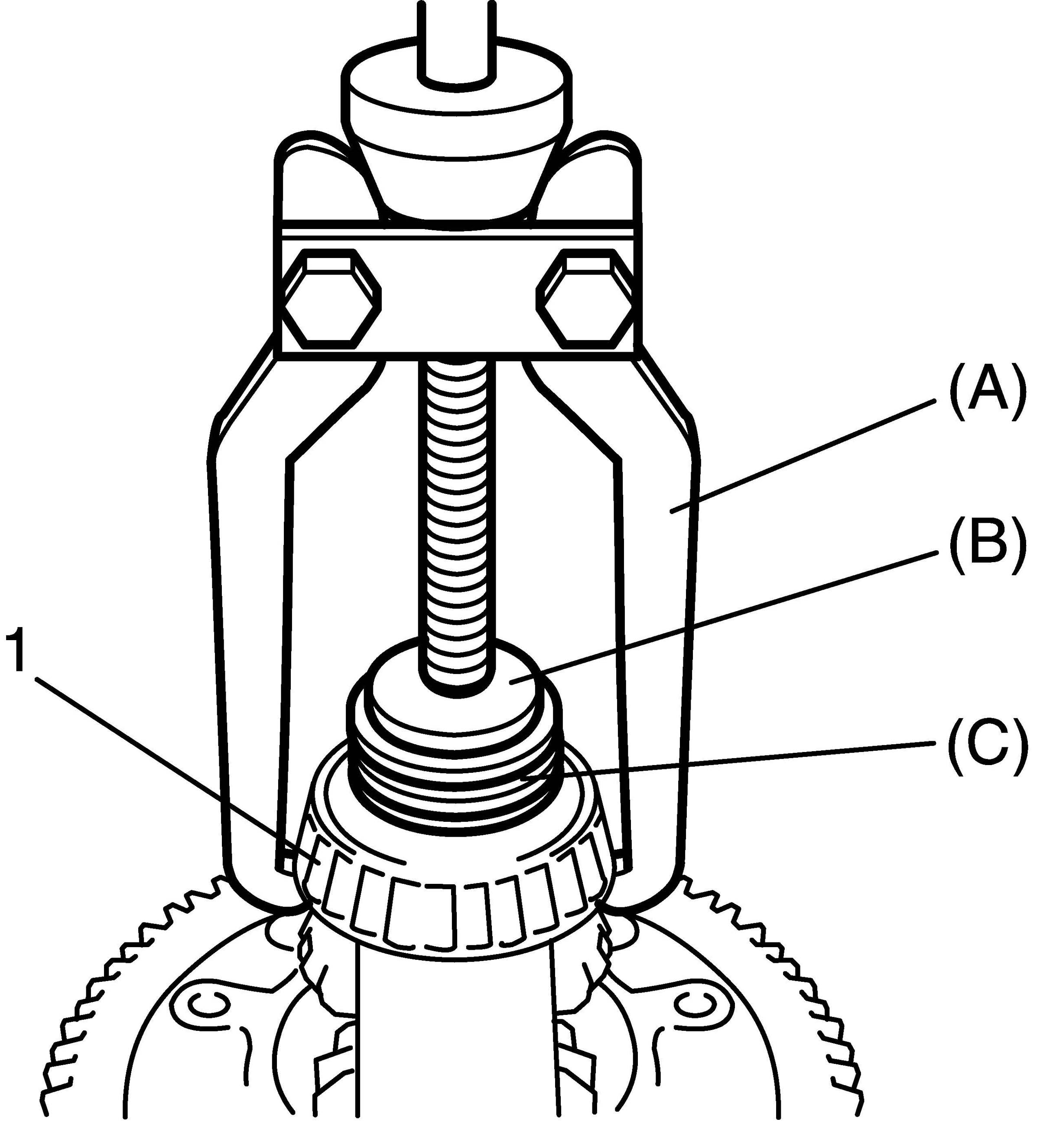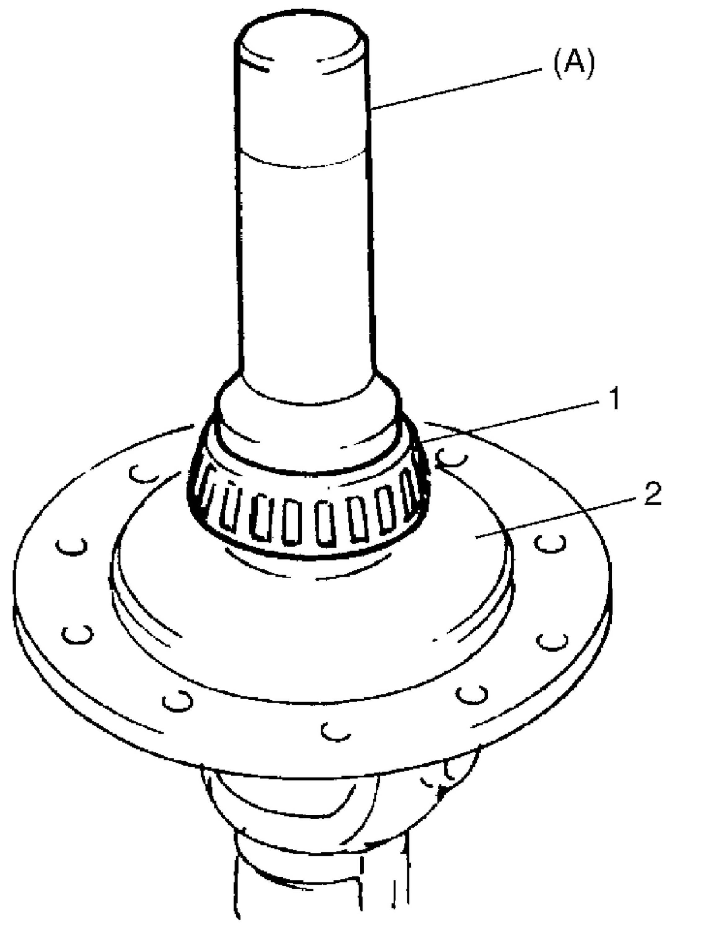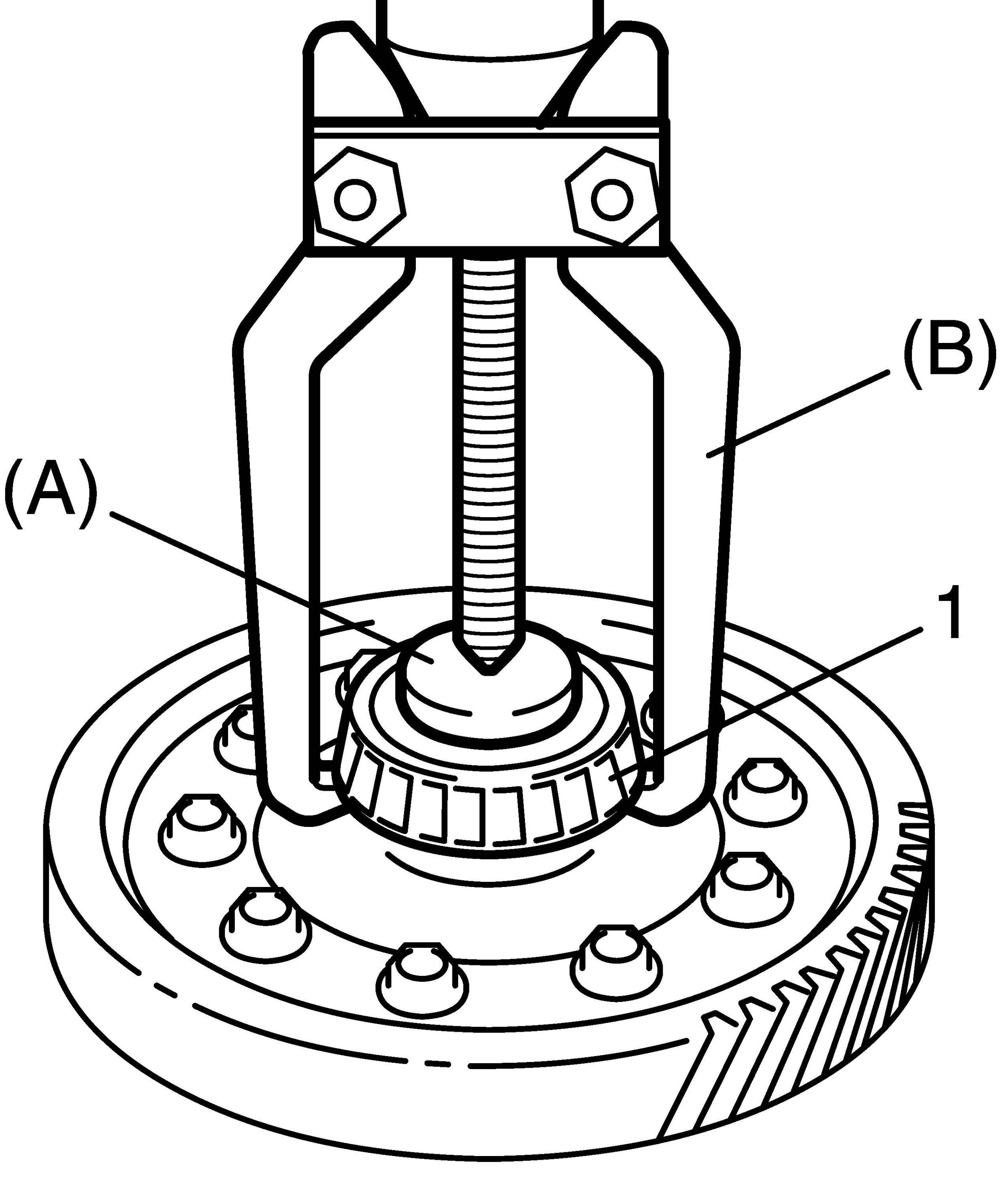 3. Press-fit left bearing (1) by using special tool and hydraulic press.