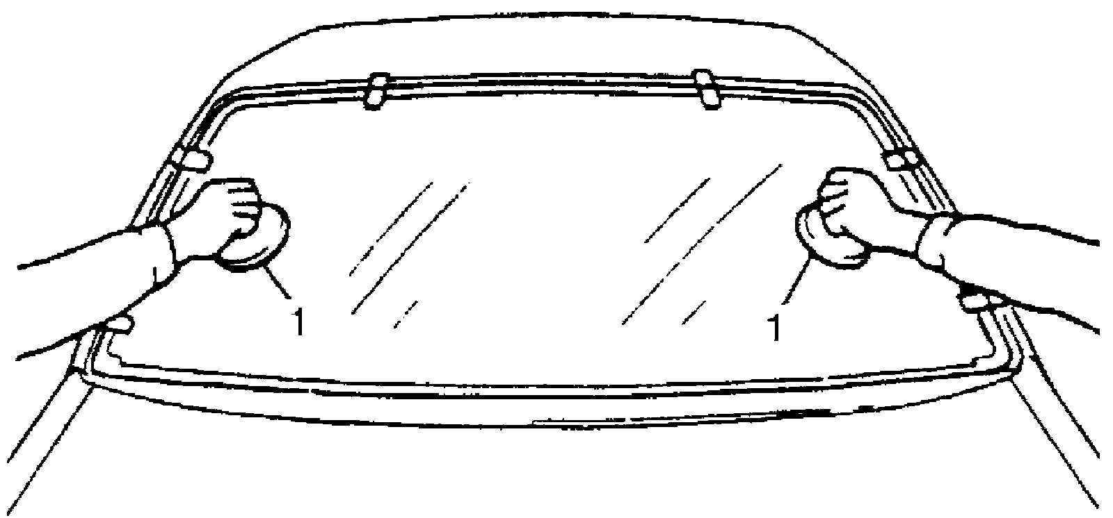 ^ Do not touch body and old adhesive surfaces where glass is to be adhered.