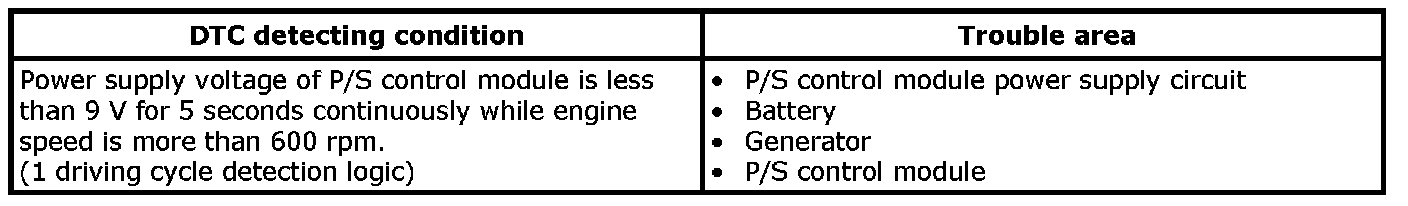 DTC C1153: P/S Control Module Power Supply Circuit