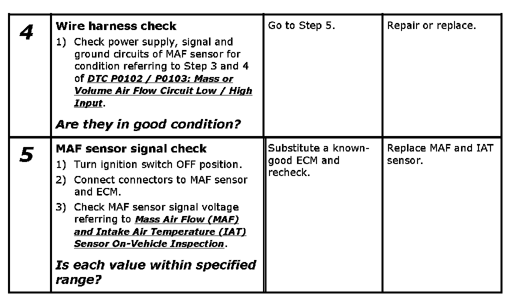 ^ The following DTCs are not detected: DTC P0171 / P0172 / P0300 / P0301 / P0302 / P0303 / P0304 and DTCs related to TP sensor and MAF sensor (other than P0101)