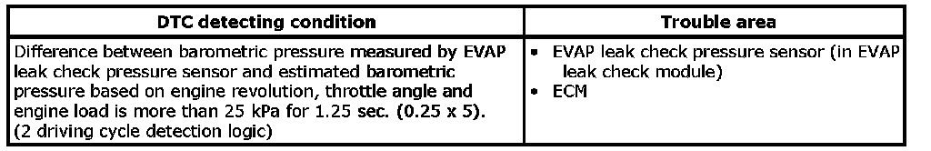 Barometric pressure is observed by EVAP leak check pressure sensor in EVAP leak check module.