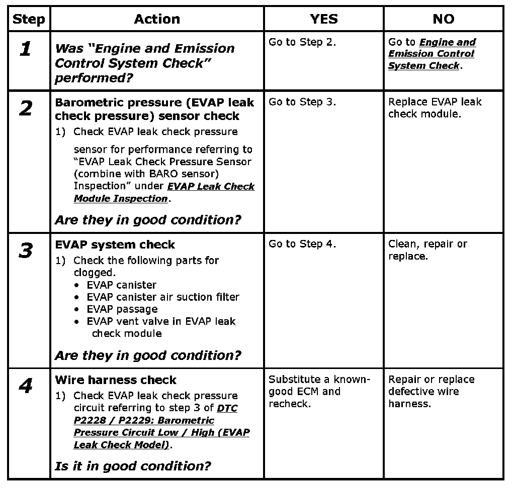 ^ The following DTCs are not detected: DTCs related to barometric pressure sensor (other than P2227)