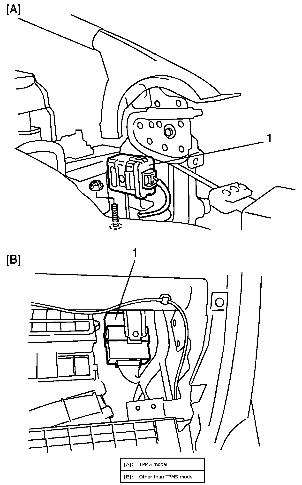 2. Remove grove box or console box referring to Step 6) of Instrument Panel Removal and Installation or Console Box Components.