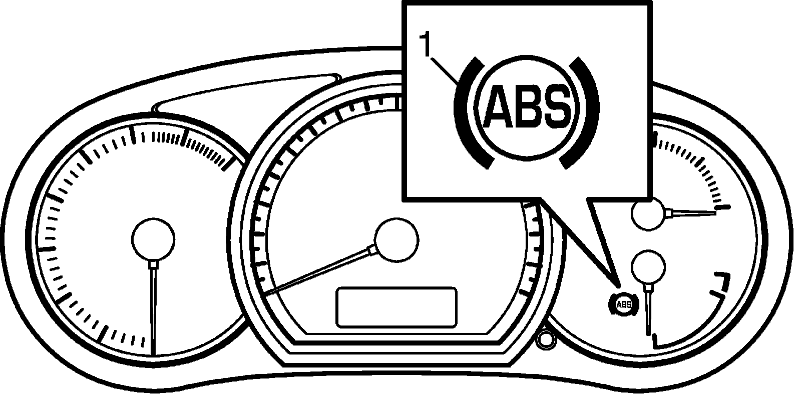 2. Check that ABS warning light (1) comes ON for about 2 seconds and then goes off.