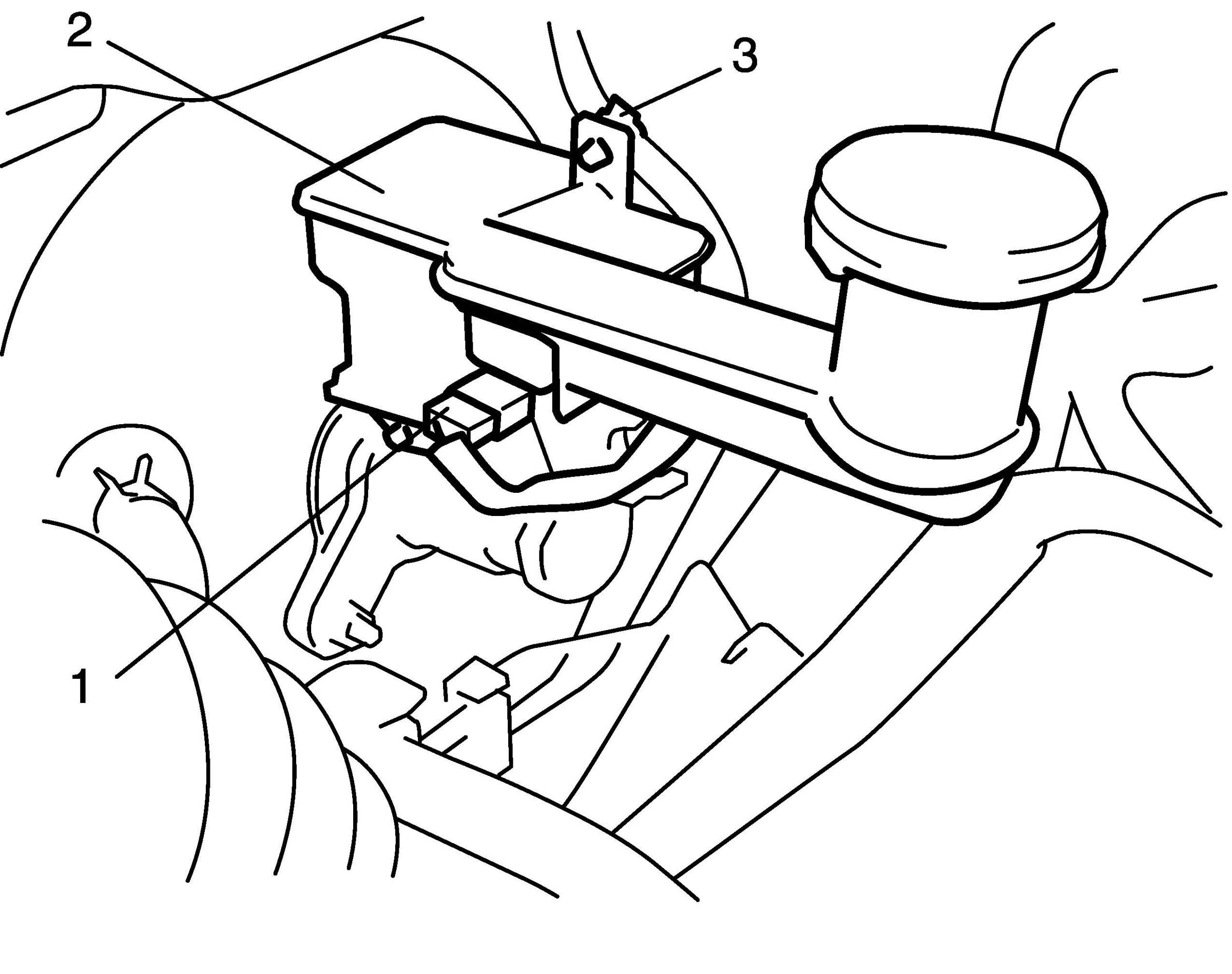 2. Disconnect fluid level switch coupler (1) and clamp (3) from reservoir (2).
