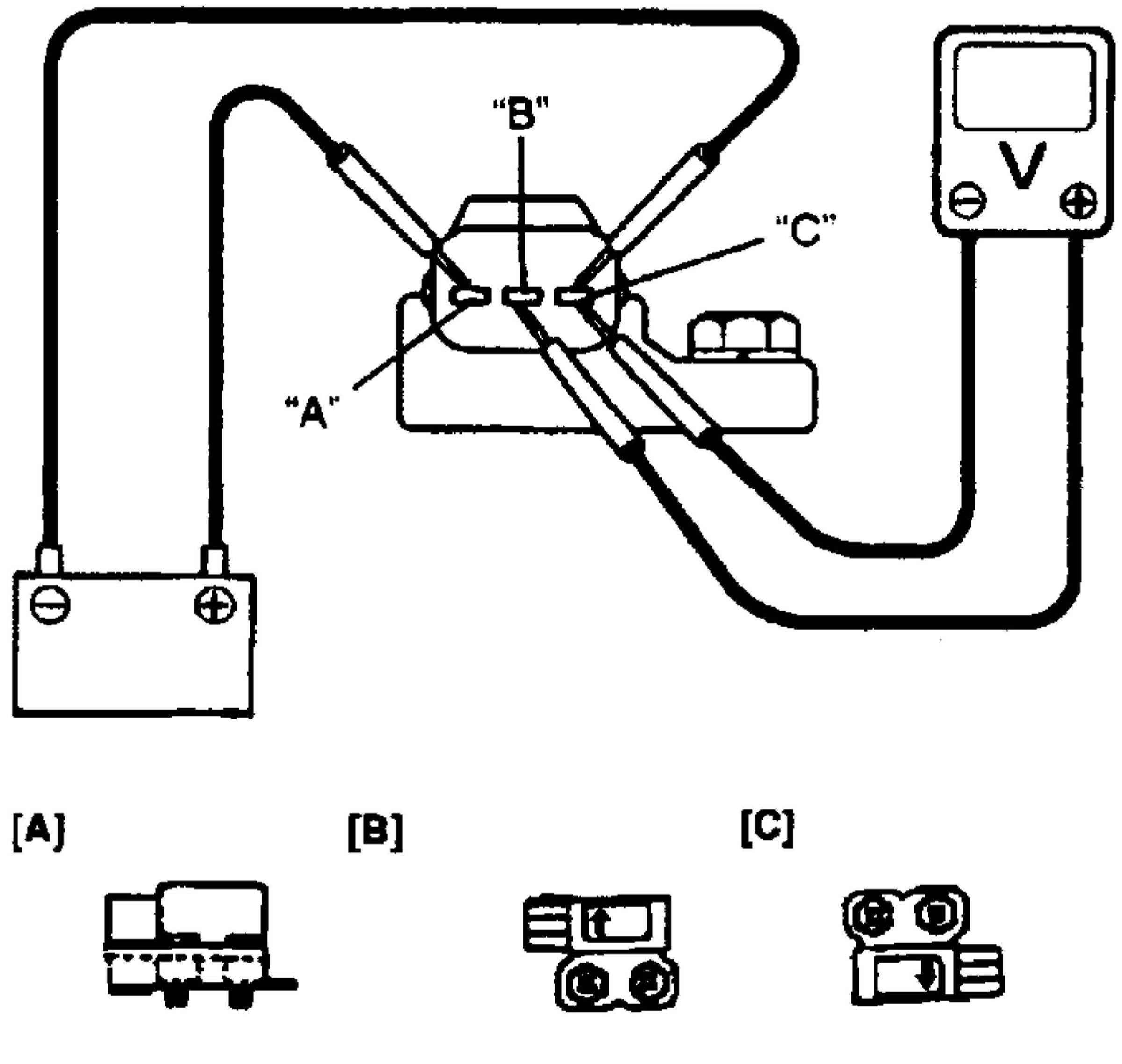 Then using voltmeter, check voltage between terminals "B" and "C".