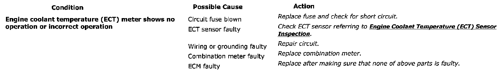 Engine Coolant Temperature (ECT) Meter Symptom Diagnosis: