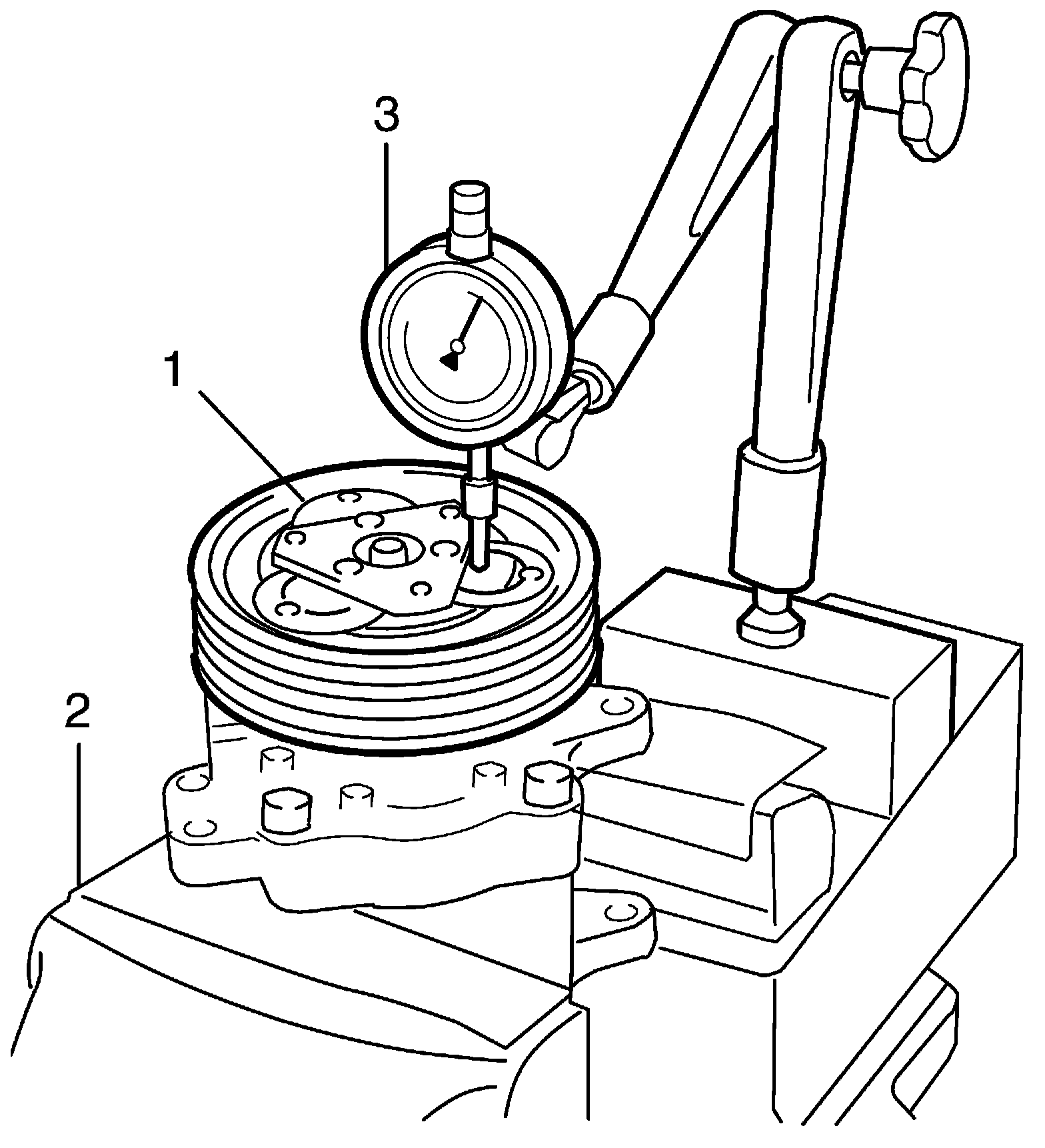 b. Set dial gauge (3) on armature plate, and then adjust its pointer at O.
