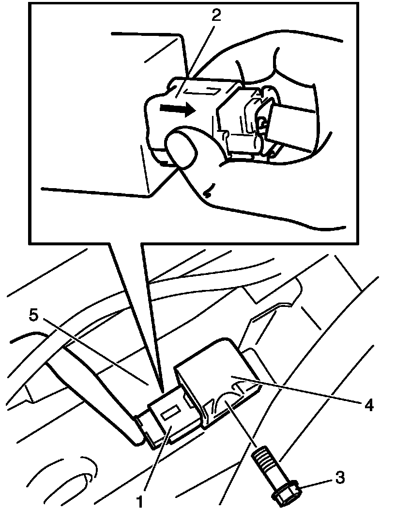 6. Remove side impact-sensor bolts (3), and side impact-sensor (4) from side sill inner panel (5).