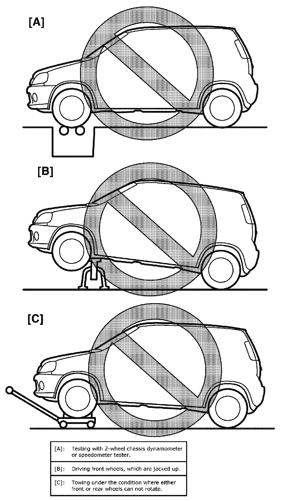 ^ Rotate wheels (tires) by brake tester at vehicle speed below 5 km/h (3 mile/h).