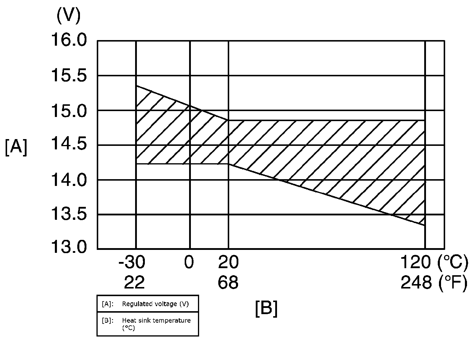 Voltage: 12.5 - 13.1 V (at 20 °C, 68 °F)