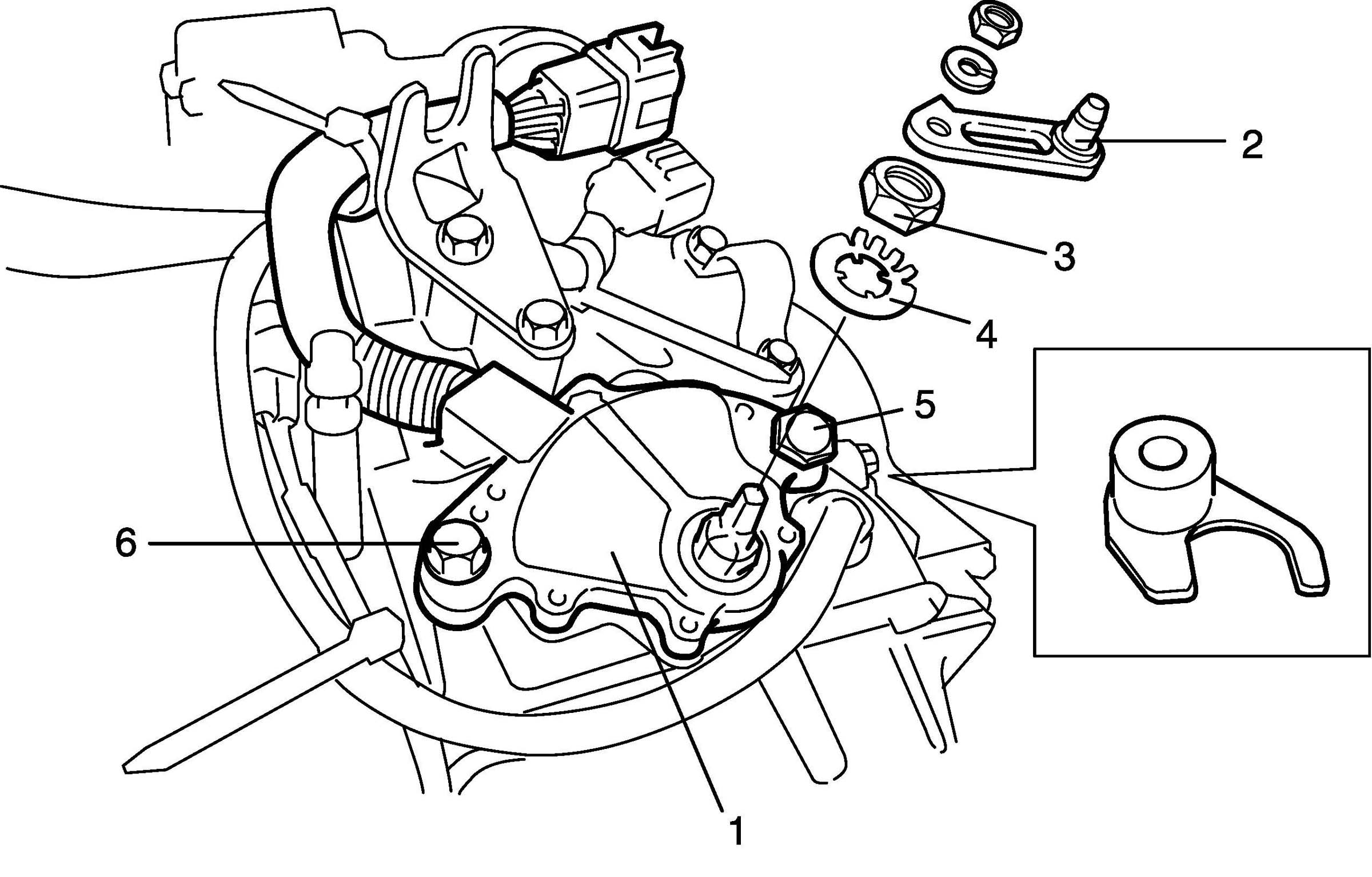e) Remove bolt (5) and nut (6).