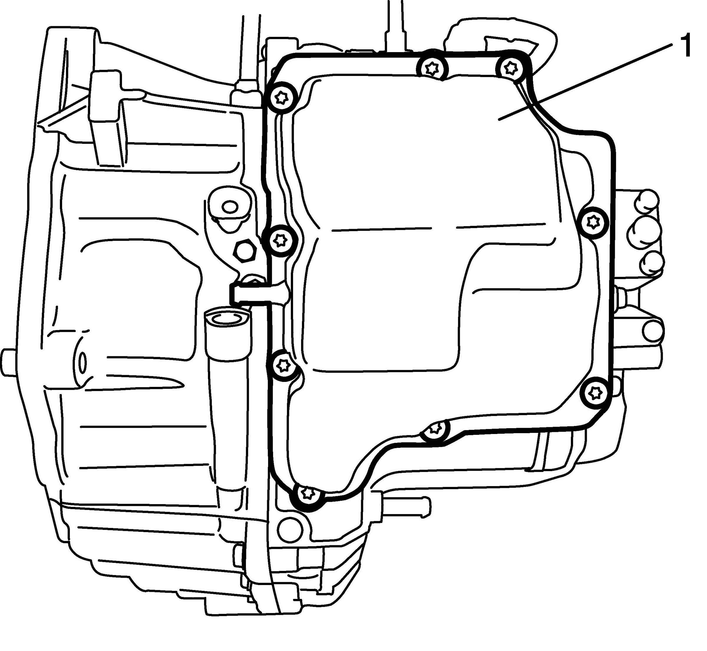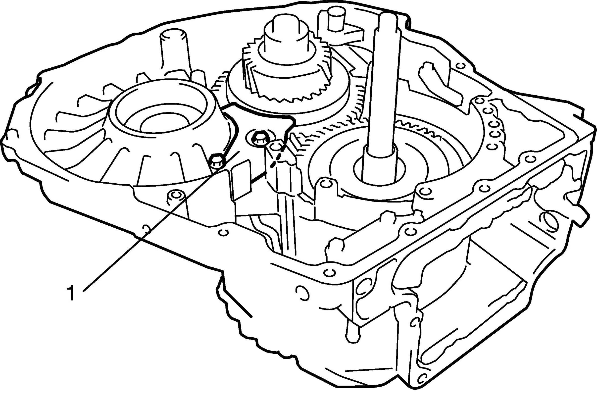 5. Remove transaxle side cover (1) by removing bolts.