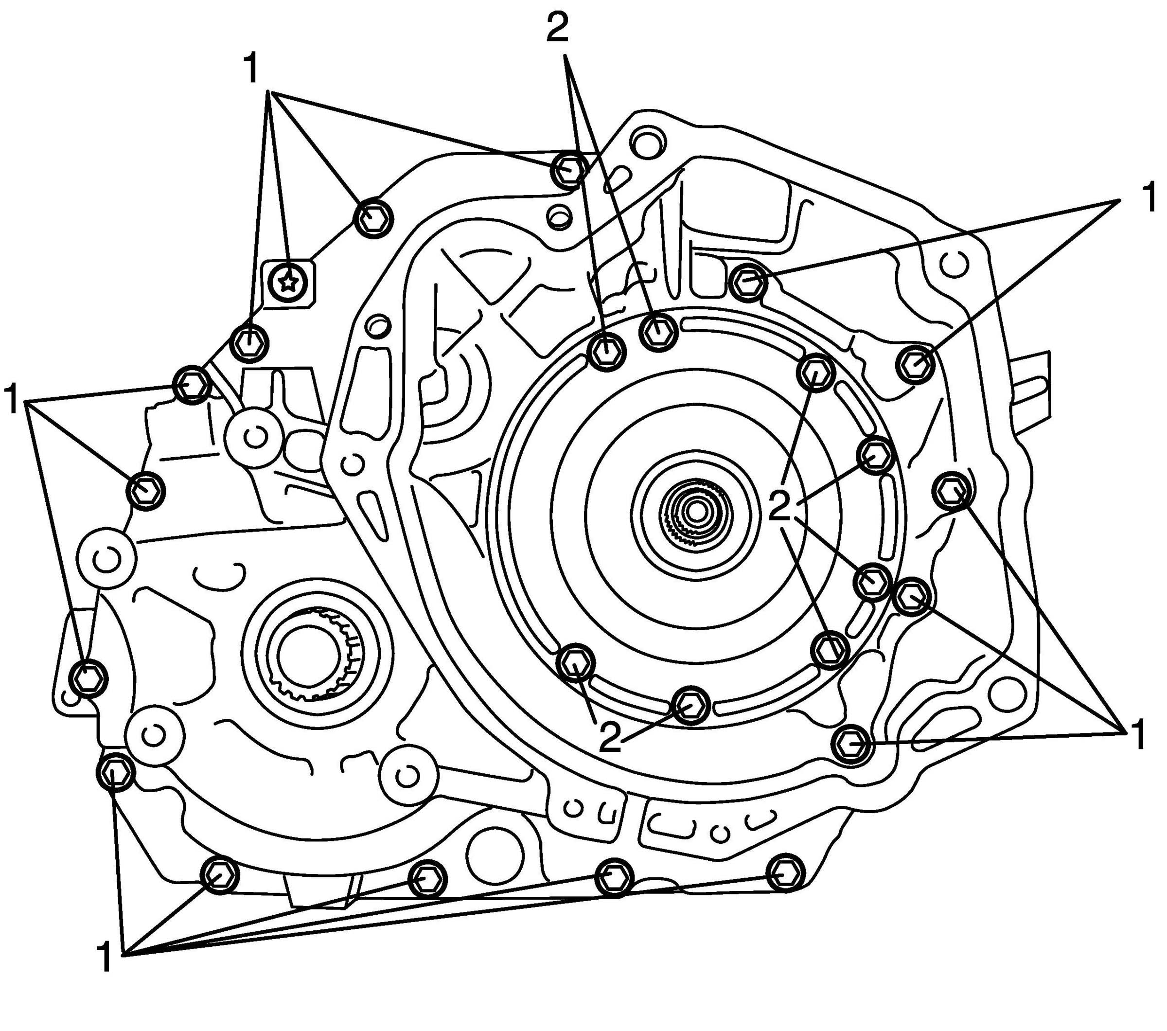11. Remove 17 bolts (1) of transaxle housing.