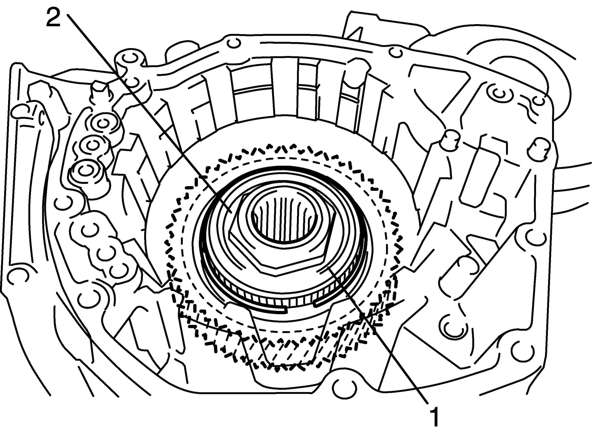 12. Remove 8 bolts (2) of oil pump body.
